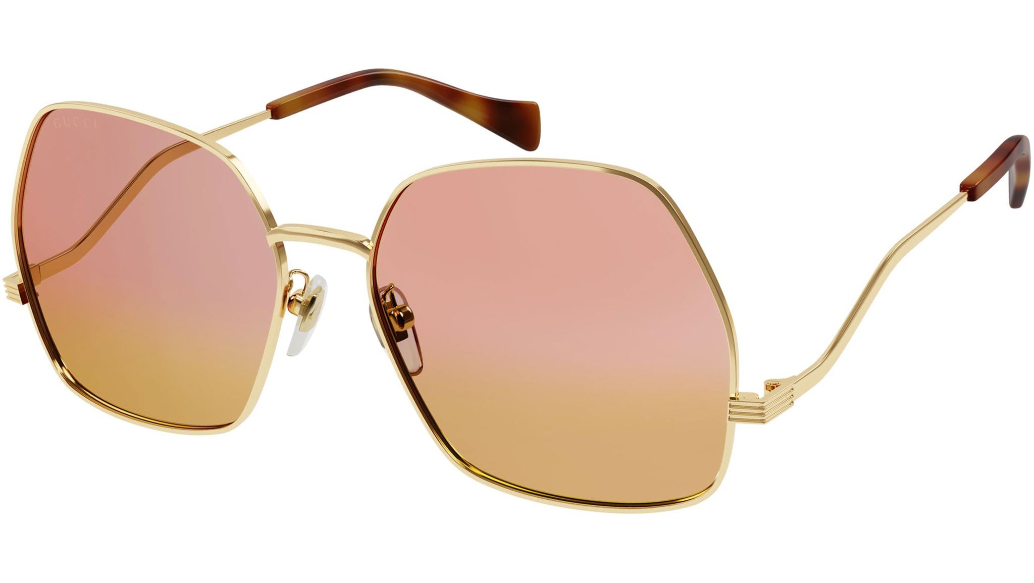 Occhiali da sole Gucci Gucci Logo modello GG0972S 003, variante colore oro endura lucido con lenti color doppia sfumatura rosa e arancio. Montature eclettiche e modelli intramontabili: la linea sole Gucci rappresenta la punta di diamante dell'artigianalità italiana. Massima qualità e attenzione ai dettagli, per un nuovo concetto di lusso: Gucci sta reinventando lo stile, con un approccio totalmente moderno alla moda, nella sua nuova vision più creativa, eclettica e audace.