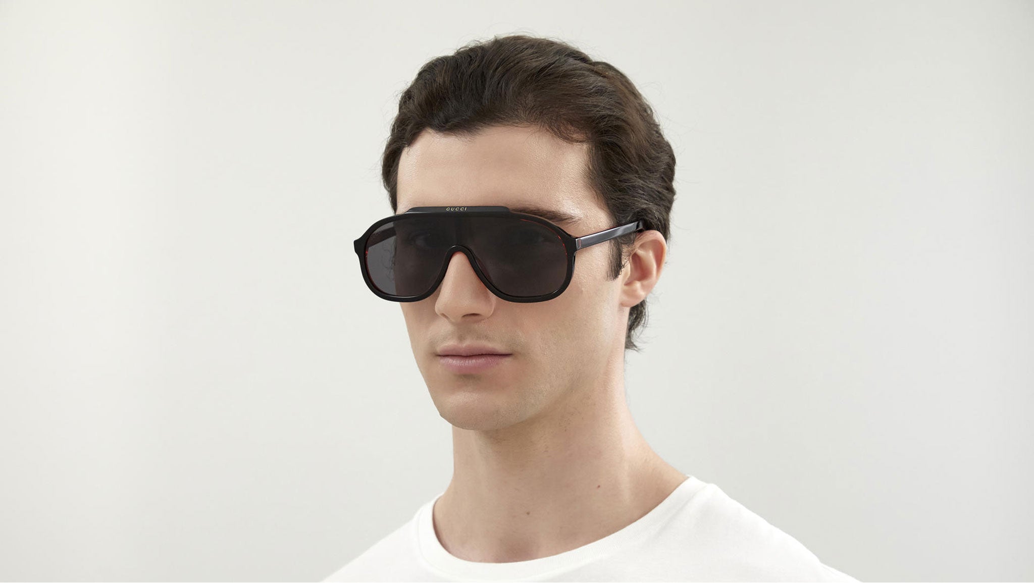 Occhiali da sole Gucci Seasonal Icon modello GG1038S 001, variante colore trilayer rosso trasparente e nero con lenti color grigio mask tinta unita. Montature eclettiche e modelli intramontabili: la linea sole Gucci rappresenta la punta di diamante dell'artigianalità italiana. Massima qualità e attenzione ai dettagli, per un nuovo concetto di lusso: Gucci sta reinventando lo stile, con un approccio totalmente moderno alla moda, nella sua nuova vision più creativa, eclettica e audace.