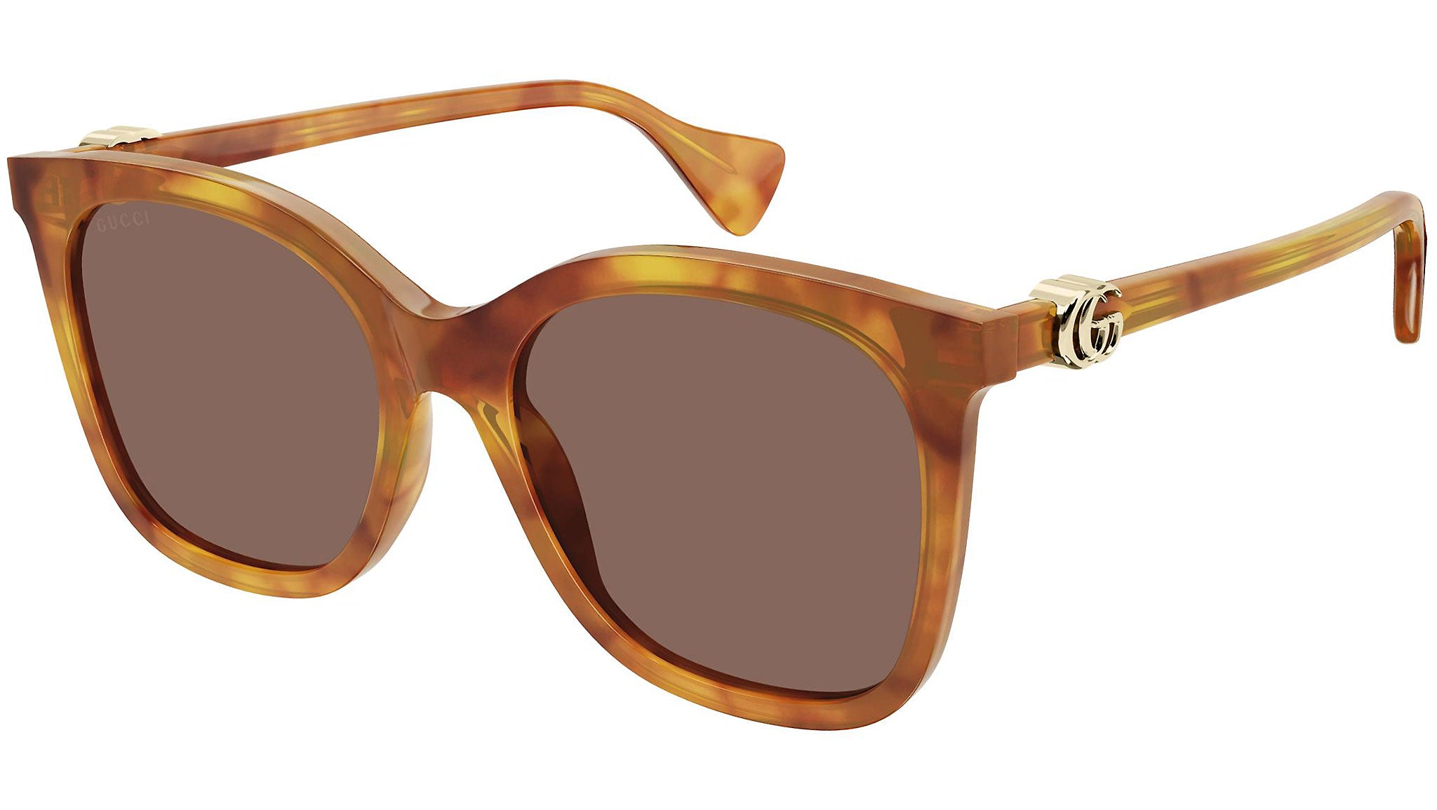 Occhiali da sole Gucci Logo modello 1071S 003, variante colore avana biondo lucido con lenti color marrone caldo tinta unita. Montature eclettiche e modelli intramontabili: la linea sole Gucci rappresenta la punta di diamante dell'artigianalità italiana. Massima qualità e attenzione ai dettagli, per un nuovo concetto di lusso: Gucci sta reinventando lo stile, con un approccio totalmente moderno alla moda, nella sua nuova vision più creativa, eclettica e audace.