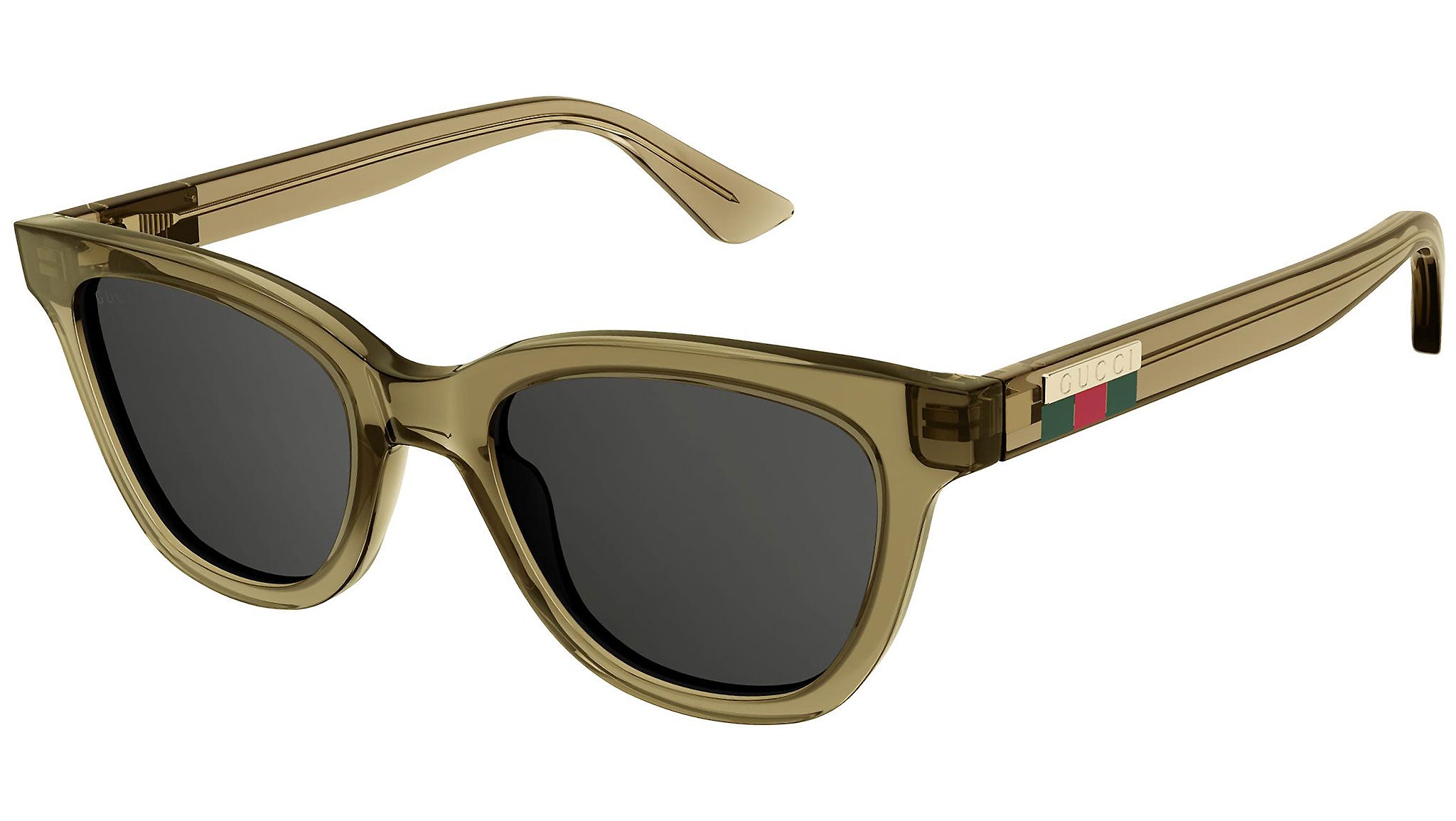 Occhiali da sole Gucci Logo modello 1116S 004, variante colore marrone trasparente lucido con lenti color grigio tinta unita. Montature eclettiche e modelli intramontabili: la linea sole Gucci rappresenta la punta di diamante dell'artigianalità italiana. Massima qualità e attenzione ai dettagli, per un nuovo concetto di lusso: Gucci sta reinventando lo stile, con un approccio totalmente moderno alla moda, nella sua nuova vision più creativa, eclettica e audace.