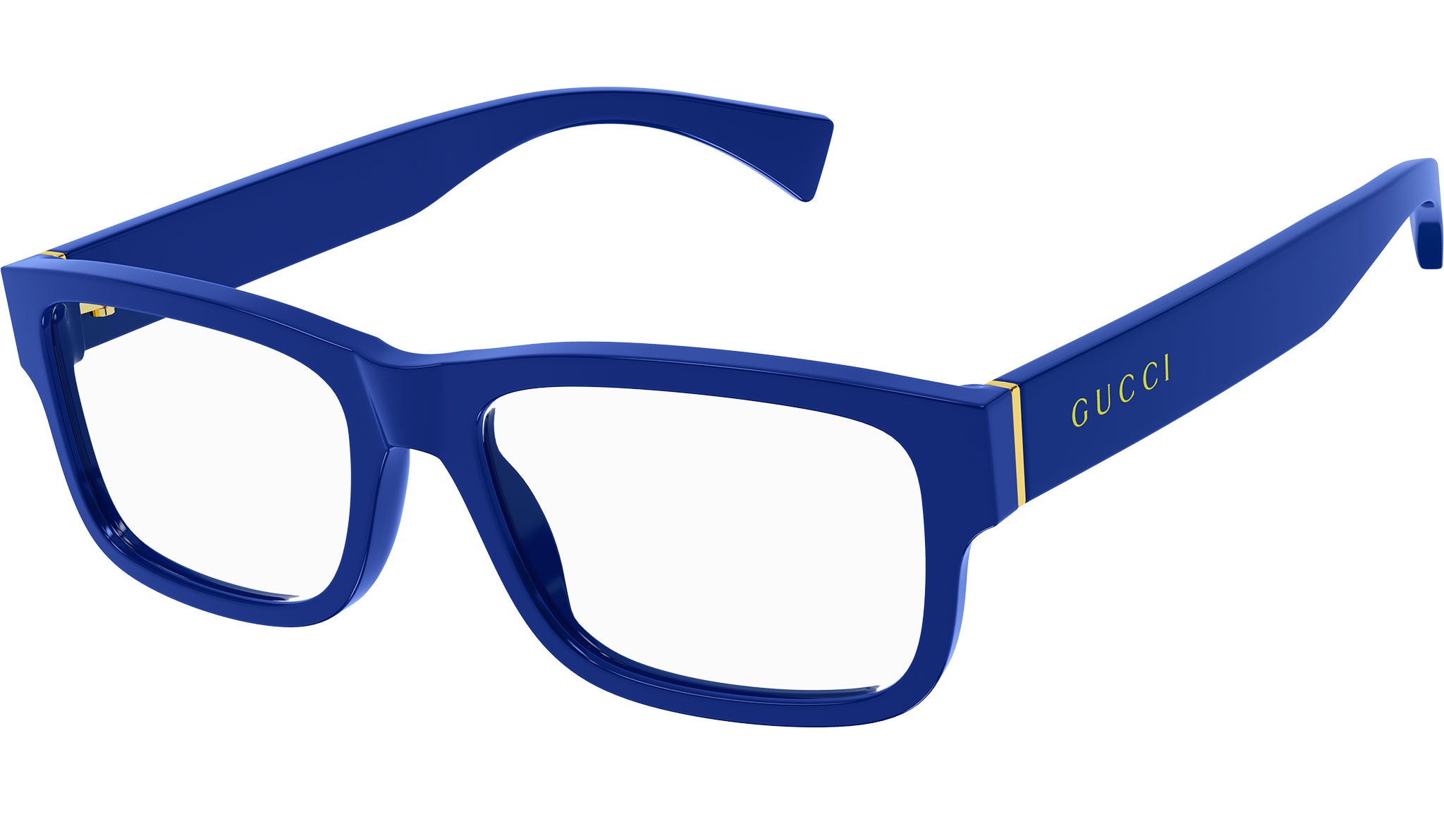 Occhiali da vista Gucci linea Gucci Logo modello GG1141O variante colore 002 blu classico tinta unita lucido con astine color blu.