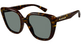 Occhiali da sole Gucci Logo modello GG1169S variante colore 003 tartaruga scuro lucido con lenti color verde tinta unita.