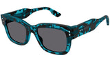 Occhiali da sole Gucci Logo modello GG1217S variante colore 003 striato avana scuro e turchese trasparente con lenti color grigio tinta unita.