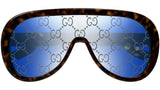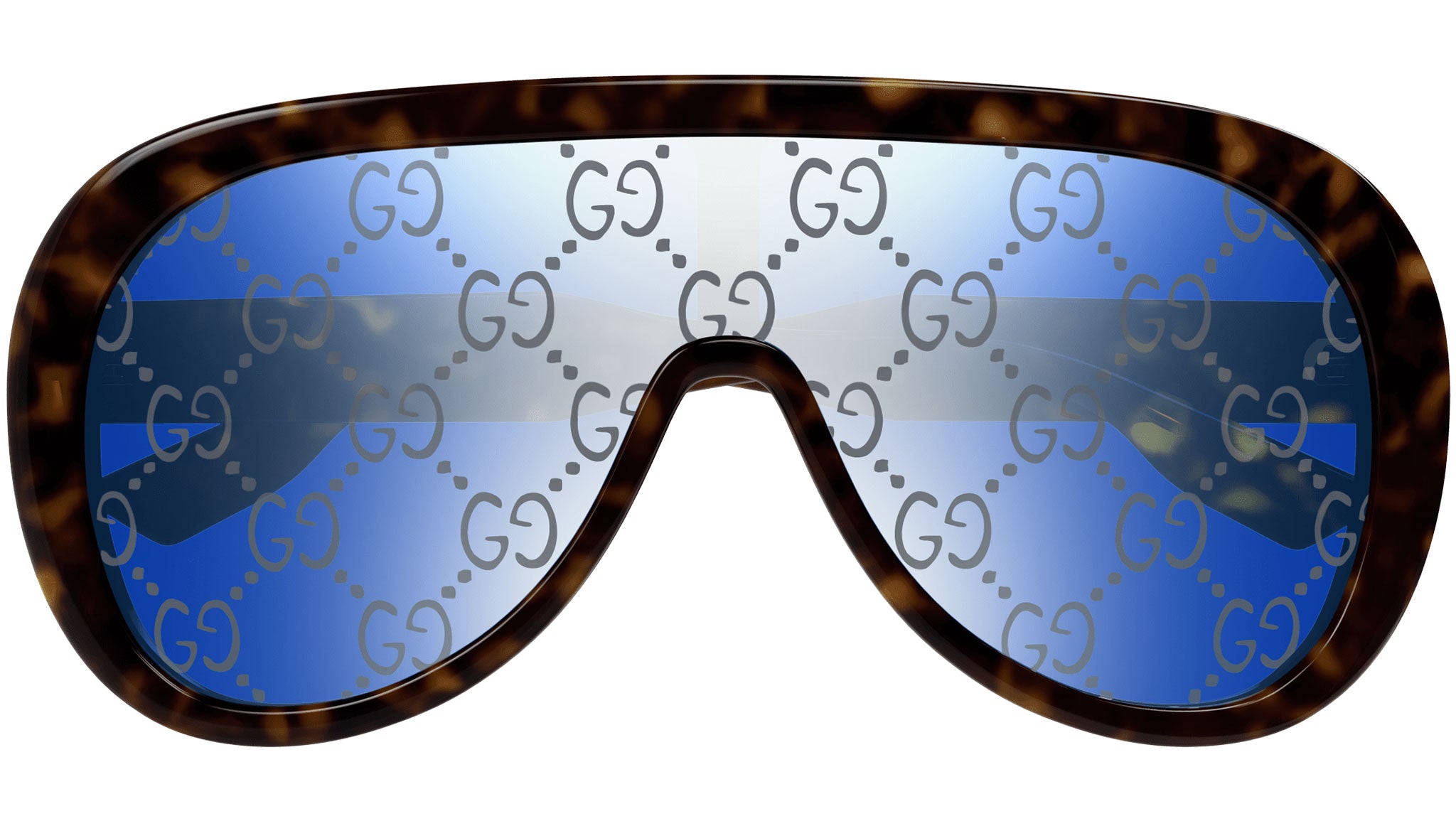 Occhiali da sole Gucci linea Fashion Inspired modello GG1370S variante colore 002 avana lucido classico con lenti color blu tinta unita.