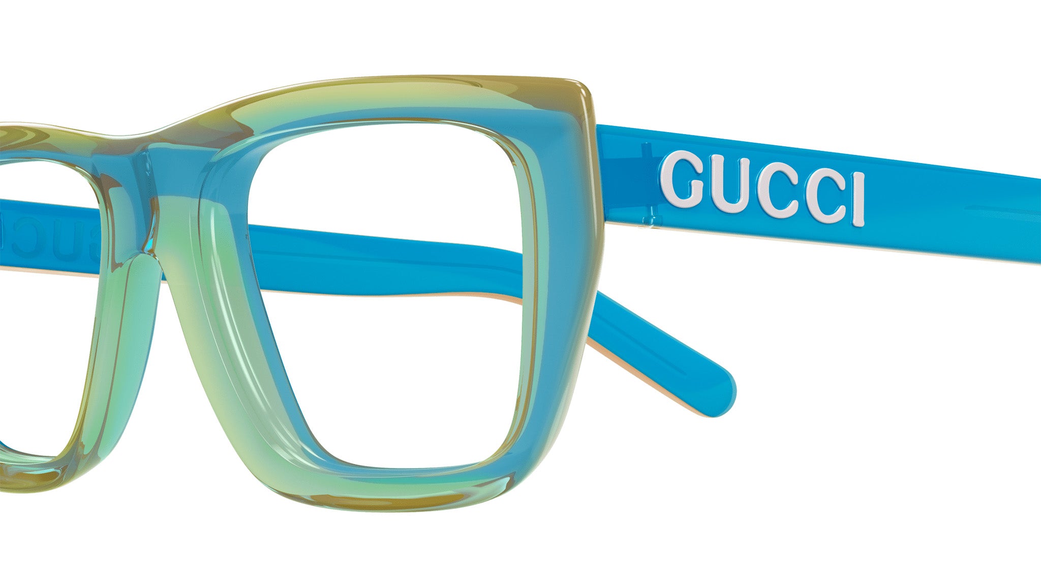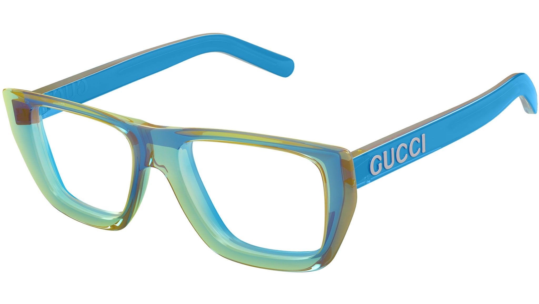 Occhiali da vista Gucci modello GG1724O linea Lettering in iniettato forma rettangolare codice colore 003 azzurro neon trasparente lucido - bordo anteriore allover: mandarino trasparente lucido con aste in blu e lenti demo. Rivenditore autorizzato Gucci online. Gli occhiali vengono consegnati con custodia e accessori originali e sono coperti dalla garanzia ufficiale di 12 mesi del produttore.