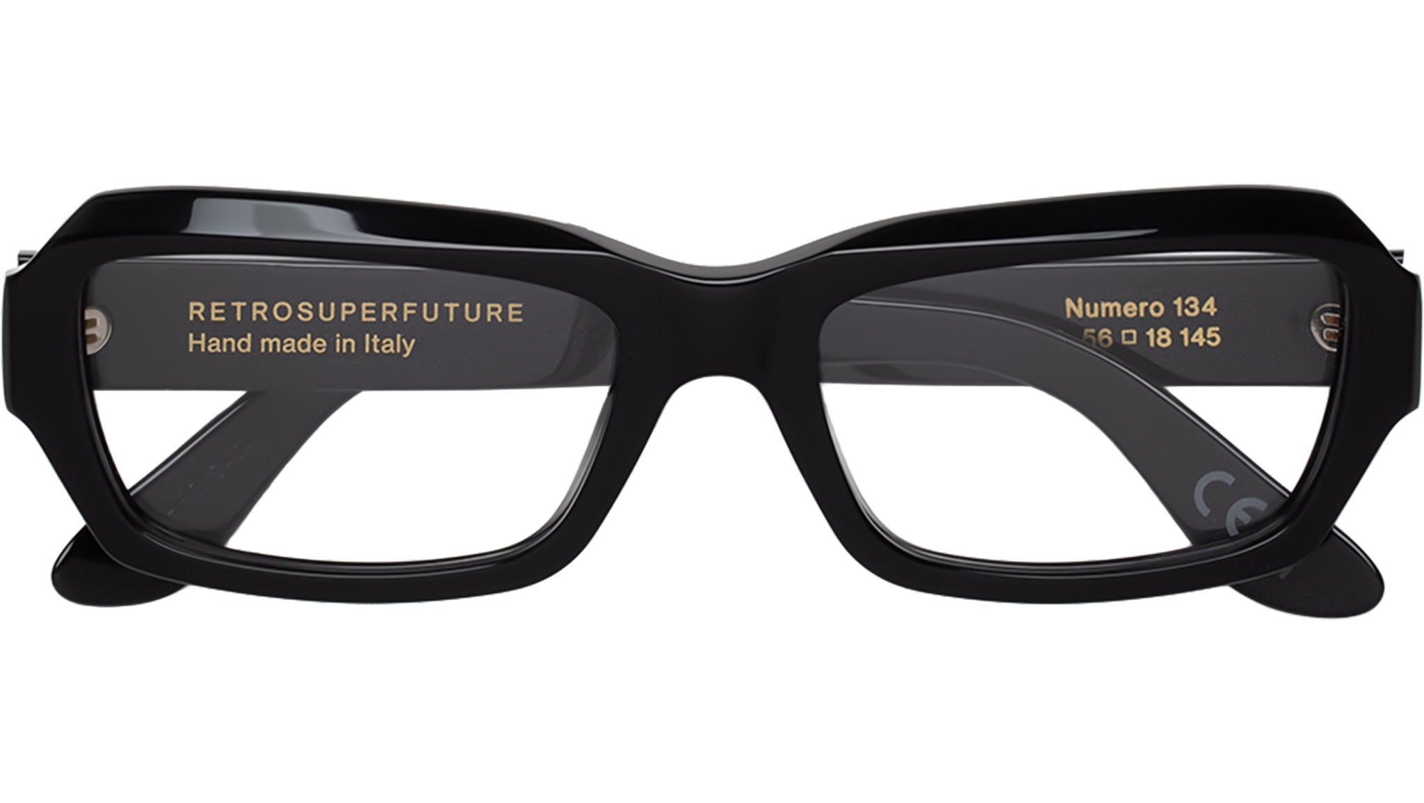 Montatura per occhiali da vista Retrosuperfuture Numero 134 Black con montatura in acetato nero e lenti demo. Codice modello: HR8. Made in Italy. Rivenditore autorizzato RSF online. Gli occhiali vengono consegnati con custodia e accessori originali e sono coperti dalla garanzia ufficiale di 12 mesi del produttore.