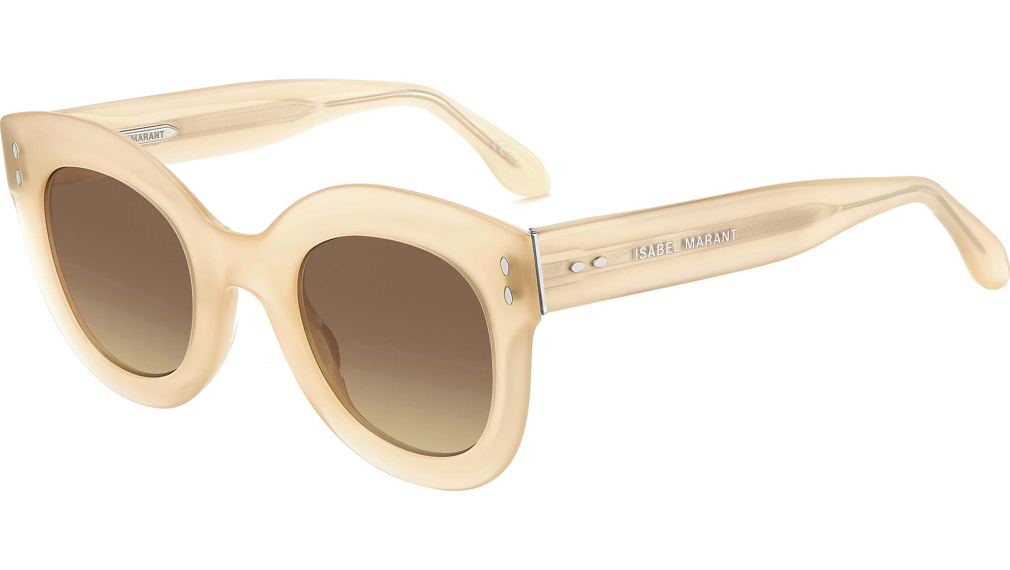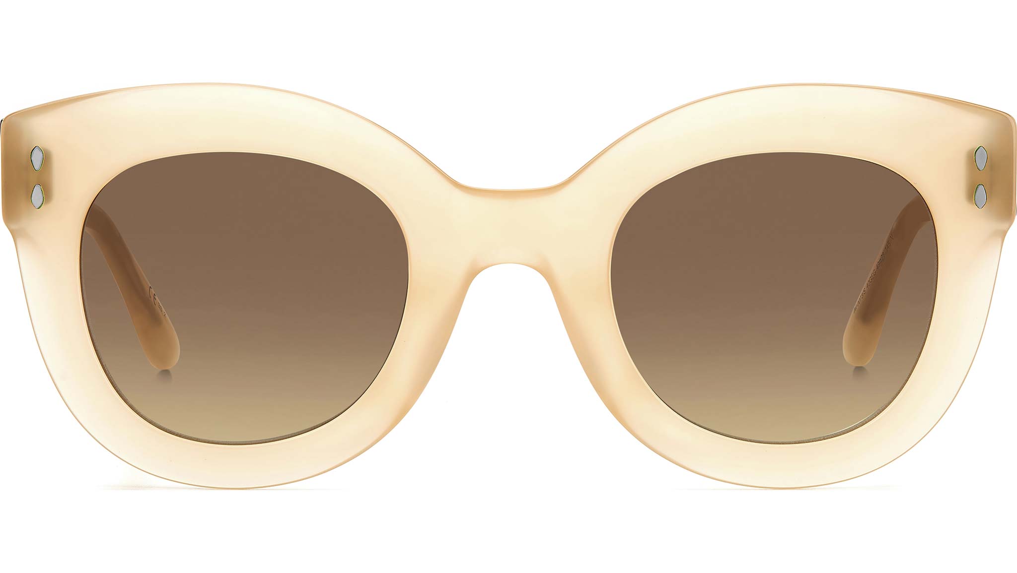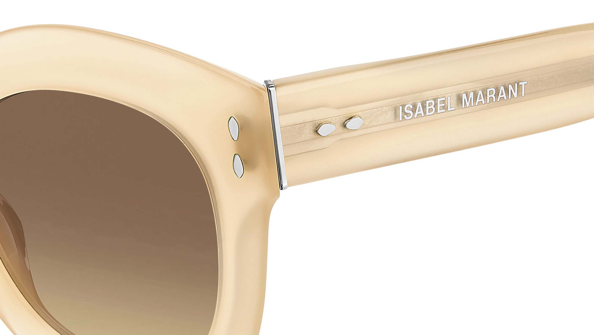 Bold and eye-catching, yet effortlessly lightweight: Isabel Marant’s New eyewear collection comprises a range of ultra-flat frames, spanning feminine colourways inspired by the brand's RTW line. Crafted from acetate with sleek metal temple cores, these sunglasses update an elegant round silhouette with a luxurious metal accent on the hinge. Enhanced with shaped temple tips and metal rivets in celebration of Isabel Marant’s signature leaf detail.