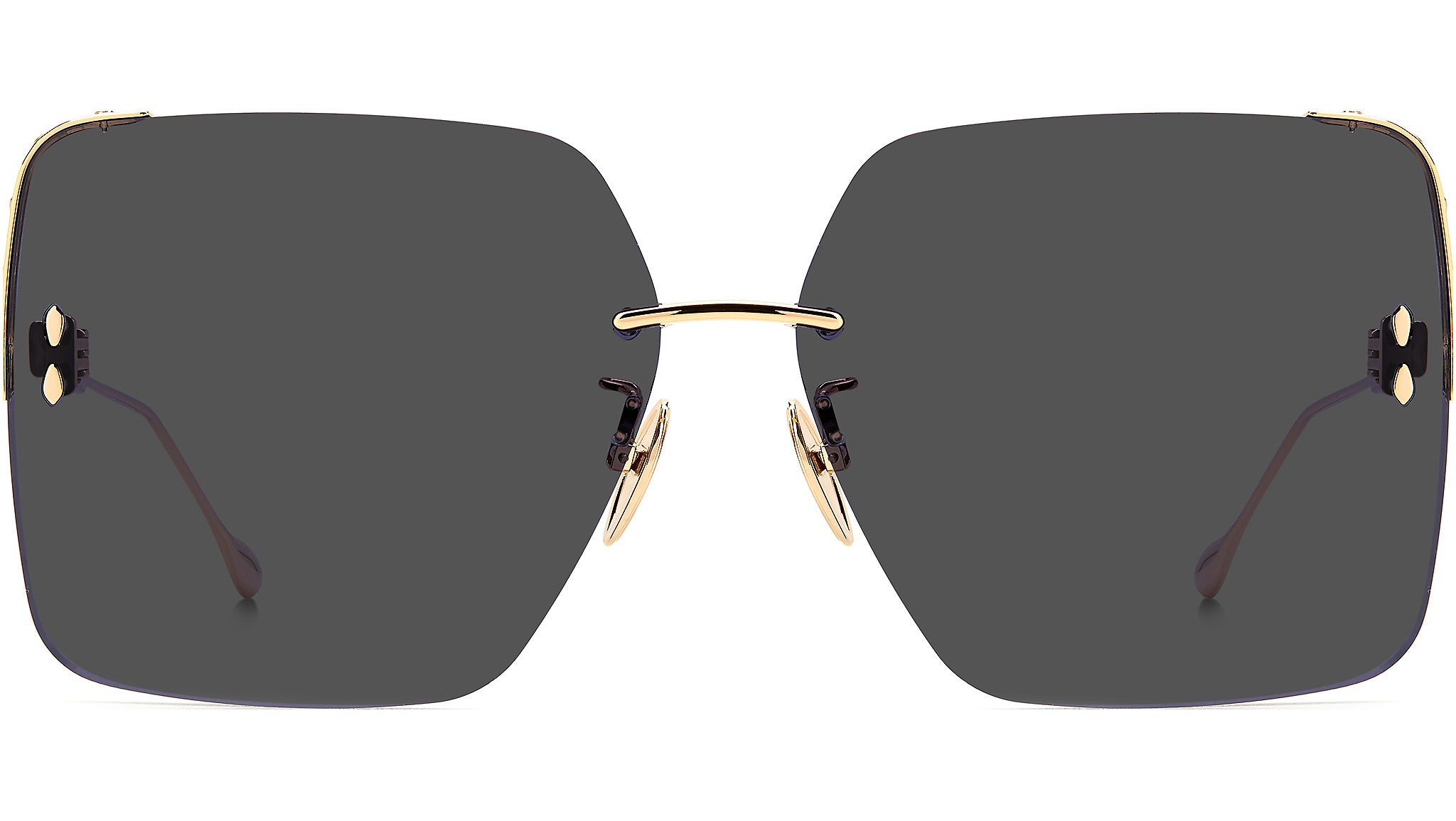 Isabel Marant's Metal Studs eyewear collection is distinguished by metal studded lens spoilers, fusing the brand's refined allure with rock undertones and free-spirited attitude. Characterised by an oversized square silhouette, these sunglasses encapsulate the brand’s DNA with iconic leaf-shaped rivets, nose pads and temple tips. Complete with slim metal temples, boasting a lasered logo on the outside for a signature finish.