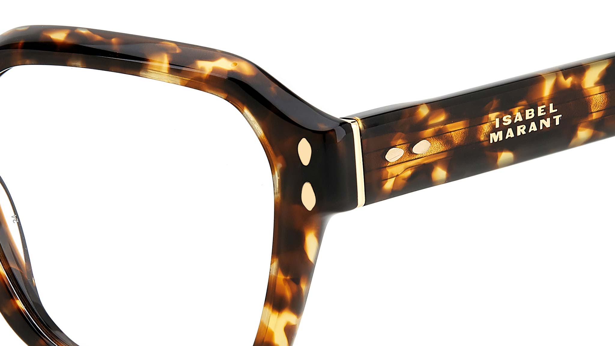 Occhiali da vista Isabel Marant modello IM 0111 codice colore 086 Havana con lenti demo. I modelli della collezione eyewear The New di Isabel Marant sono reinterpretati con forme arrotondate per un look in perfetto equilibrio tra femminilità e carattere. Rivetti in metallo con finitura argentata e i terminali sagomati si ispirano all'iconico motivo a foglia del brand. Questi occhiali da vista presentano aste con interno in metallo e cerniere con logo inciso. Le linee leggermente angolate del frontale trasformano la silhouette rettangolare da classica a contemporanea. Il nuovo logo Isabel Marant impreziosisce l'asta sinistra.