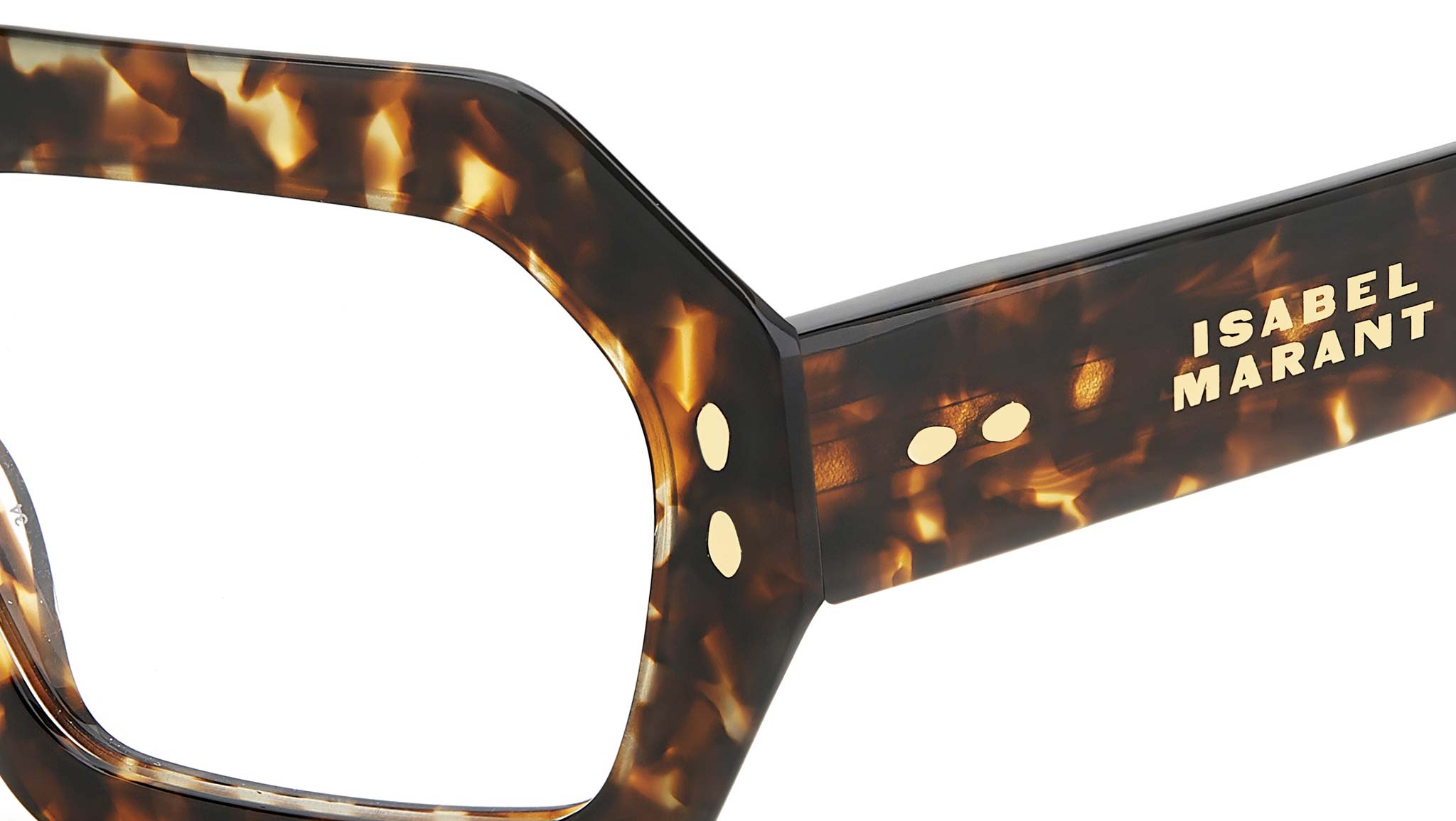 Occhiali da vista Isabel Marant modello IM 0177 codice colore 108 Havana con lenti demo. Scopri la collezione eywear di Isabel Marant dall'allure più audace e distintiva, caratterizzata da occhiali con aste larghe e forme geometriche smussate che coniugano personalità e leggerezza. Realizzate in acetato, queste montature da vista vantano una silhouette esagonale che non passerà mai inosservata, arricchita da terminali sagomati e rivetti a forma di foglia in metallo color argento sul frontale e sulle aste: un omaggio ai motivi iconici del brand di moda.