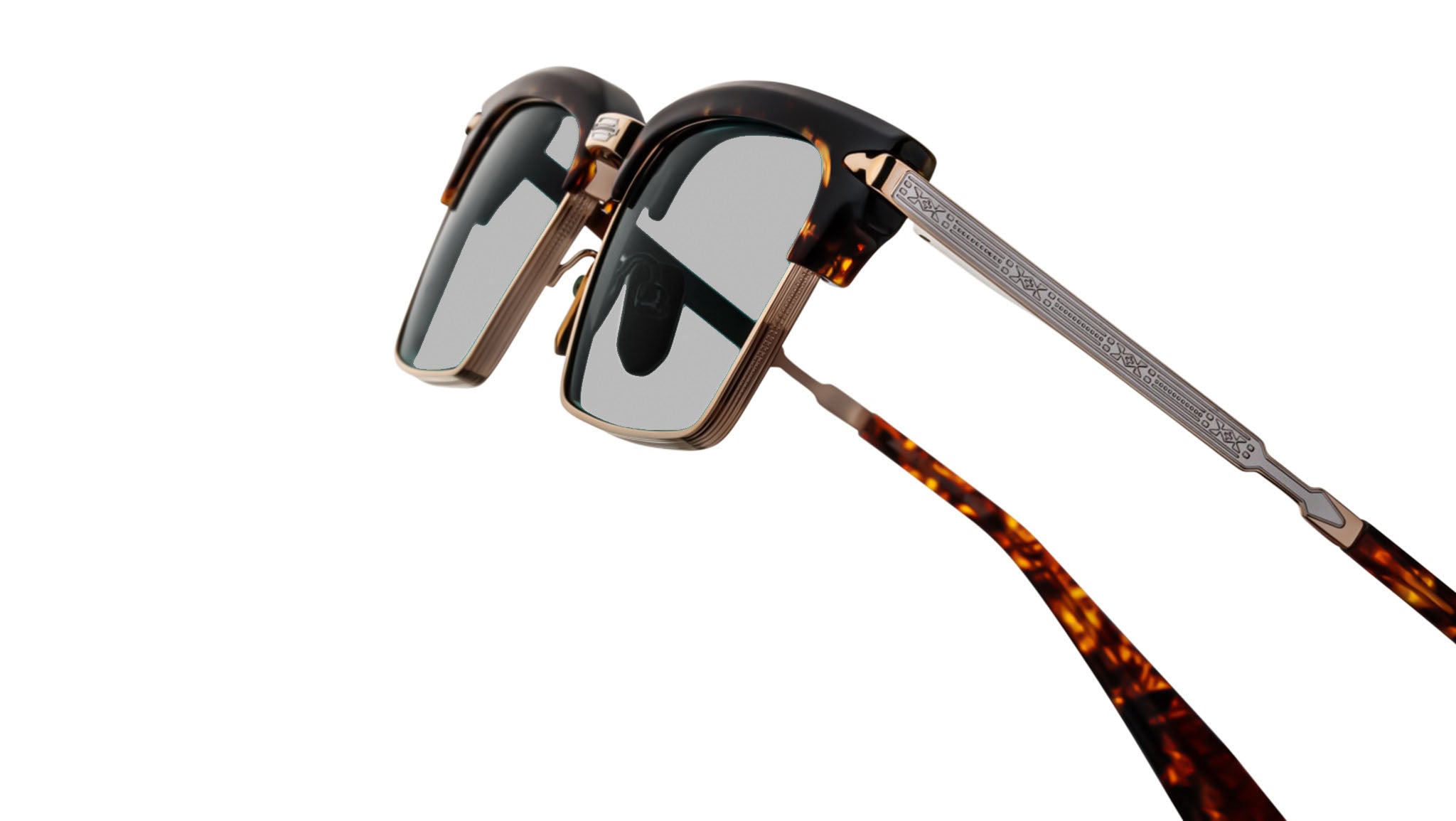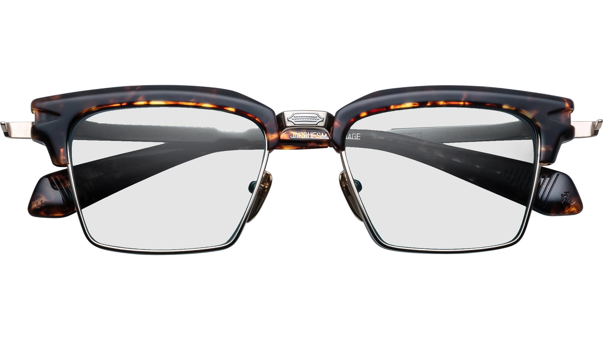 The Alin by Jacques Marie Mage are a refined nod to classic '50s style, combining a bold acetate brow with a sleek square titanium lens rim. Featuring the brand's signature arrowhead monoblock hinge and finely engraved temples with a distinctive arrowhead motif, these spectacles embody sophistication and craftsmanship. Designed for those who appreciate timeless elegance, they offer a perfect balance of vintage inspiration and modern ambition.
