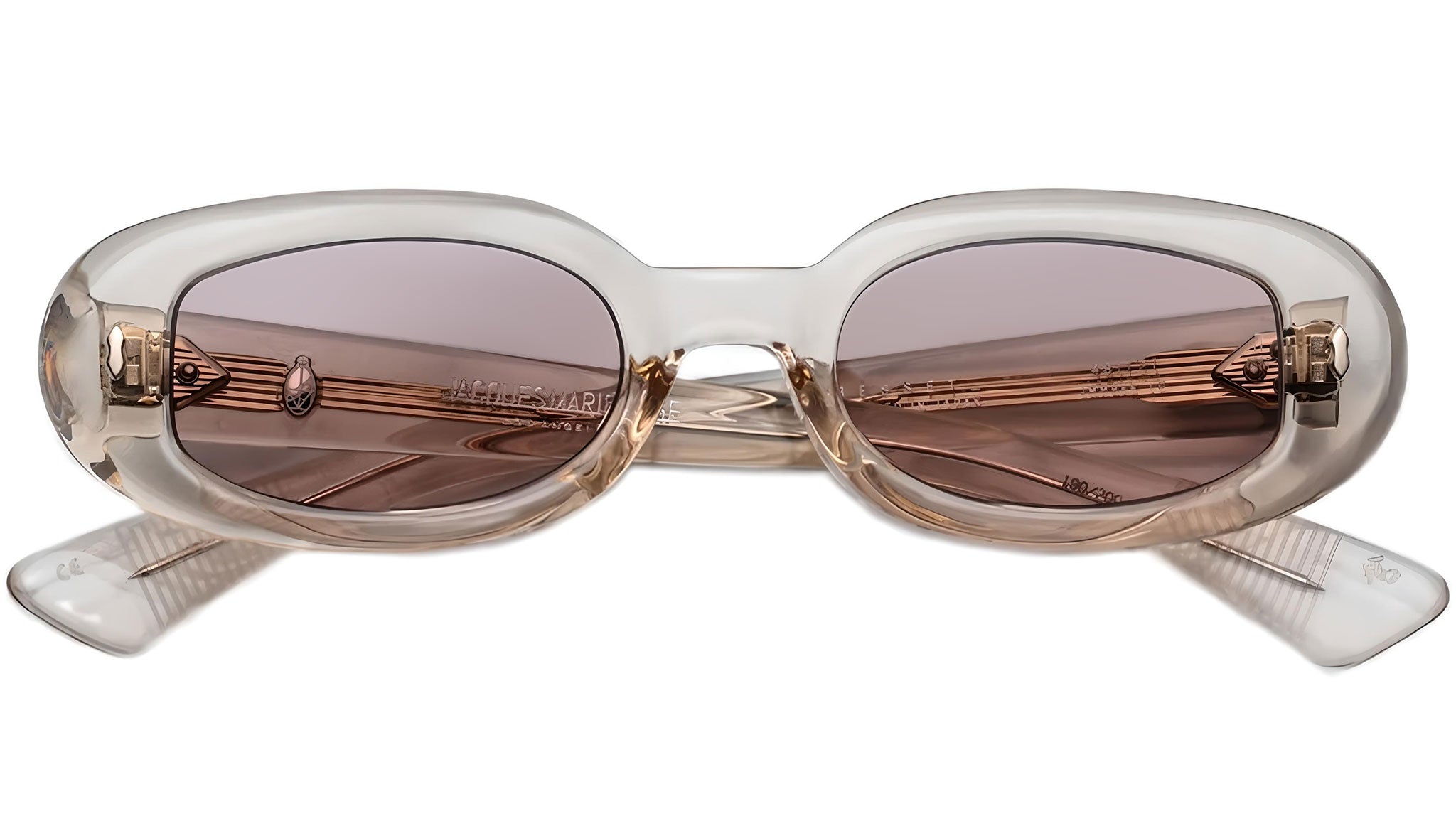 Jacques Marie Mage Besset is a petite, feminine, oval-shaped glasses inspired by the '90s, featuring a distinct lens cut and wirecore temples with signature hairline-engraved details. These understated yet sophisticated spectacles embody turn-of-the-century minimalism, offering a fresh, feminine tribute to the enduring legacy of the great fashion icons of the '90s.