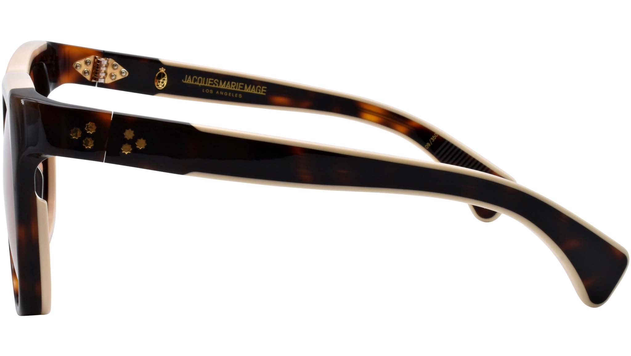 Featuring a Havana 7mm cured cellulose acetate frame complemented by custom double-laminated acetate temples and stylish orange gradient lenses. The hidden light gold wire core adds both durability and an air of mystery. Designed with precision, the light gold tension-secured custom 7-barrel hinge ensures a seamless fit. The oranhe gradient 4 base CR-39 lens provides exceptional clarity, and the backside anti-reflective treatment further enhances the visual experience.