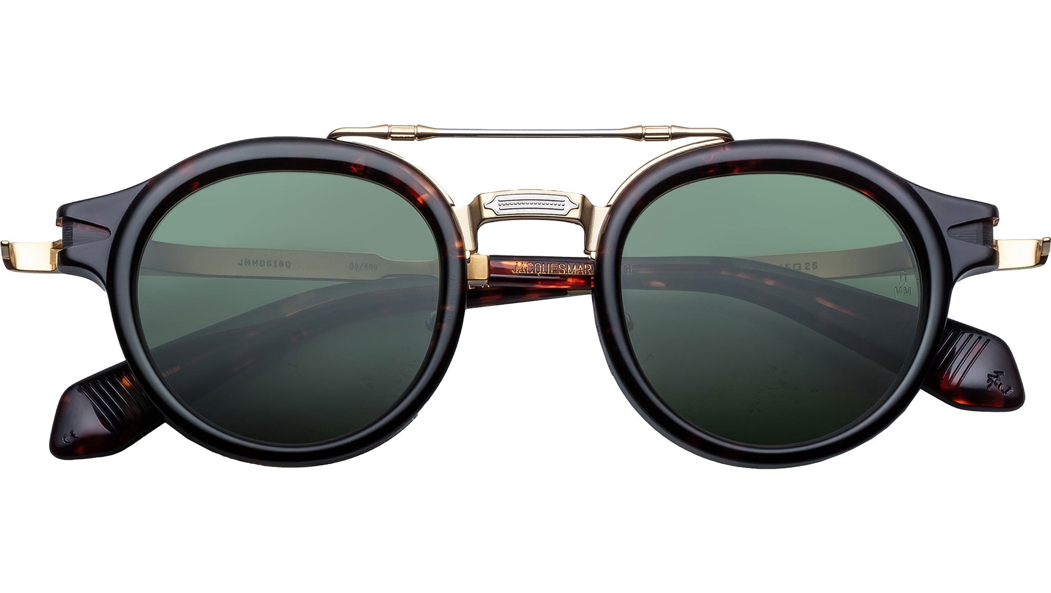 The Jacques Marie Mage Delage is a sophisticated take on circular '50s-inspired combo spectacles. Featuring a bold acetate lens shape paired with a distinct titanium brow bar, these frames are enhanced by the signature arrowhead monoblock hinge and finely engraved temples with a unique arrowhead motif. Drawing inspiration from the fluid lines and fine embellishments of Art Deco, the Delage combines timeless elegance with modern refinement, making it a perfect choice for the self-assured individual with an appreciation for subtle old-world sensibility.