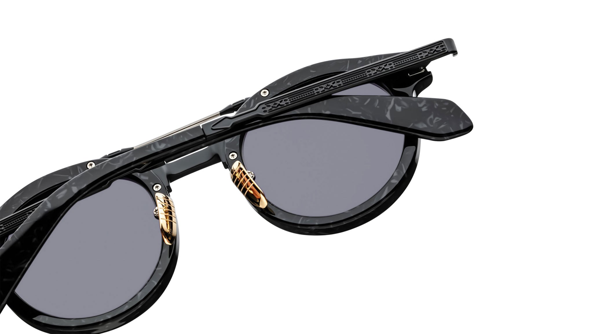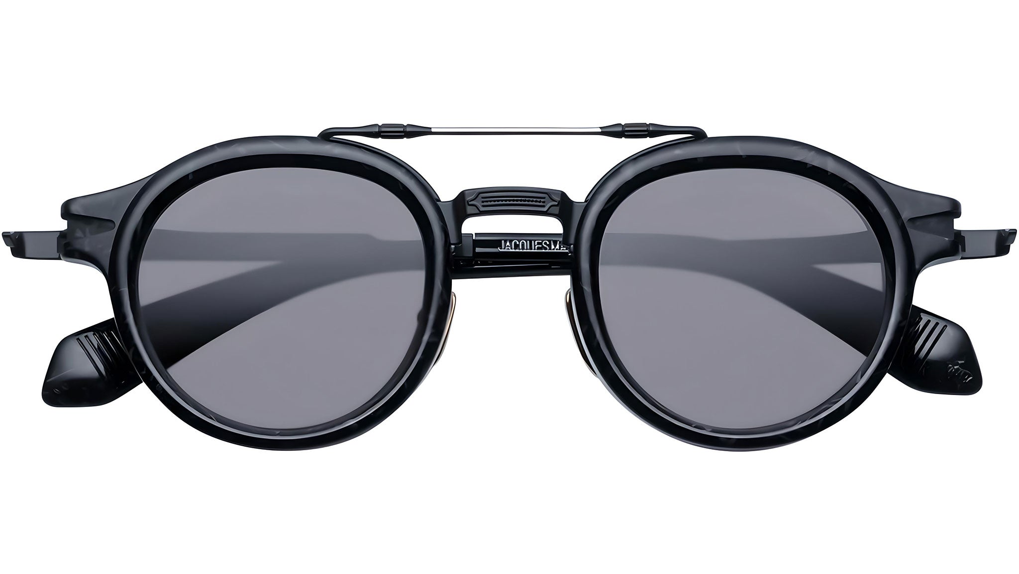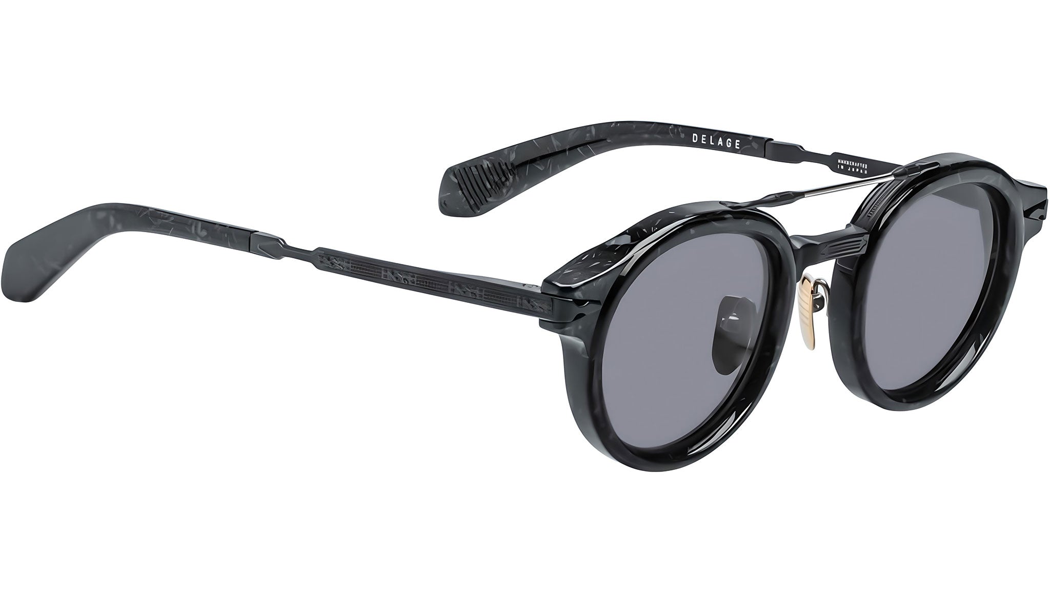 Gli occhiali Jacques Marie Mage Delage reinterpretano le montature combinate anni '50 con un ponte in titanio nero e una forma audace in acetato. I dettagli includono aste incise, cerniere monoblocco a freccia e decorazioni ispirate all’Art Déco, per un’eleganza senza tempo. Montatura in titanio nero con dettagli in acetato e lenti CR-39 viola Jet con trattamento antiriflesso e protezione UV 100%. Presentati in un cofanetto in seta con custodia in pelle rigida e certificato numerato. Edizione limitata di 500 pezzi. Codice modello: JMMDG-10S.