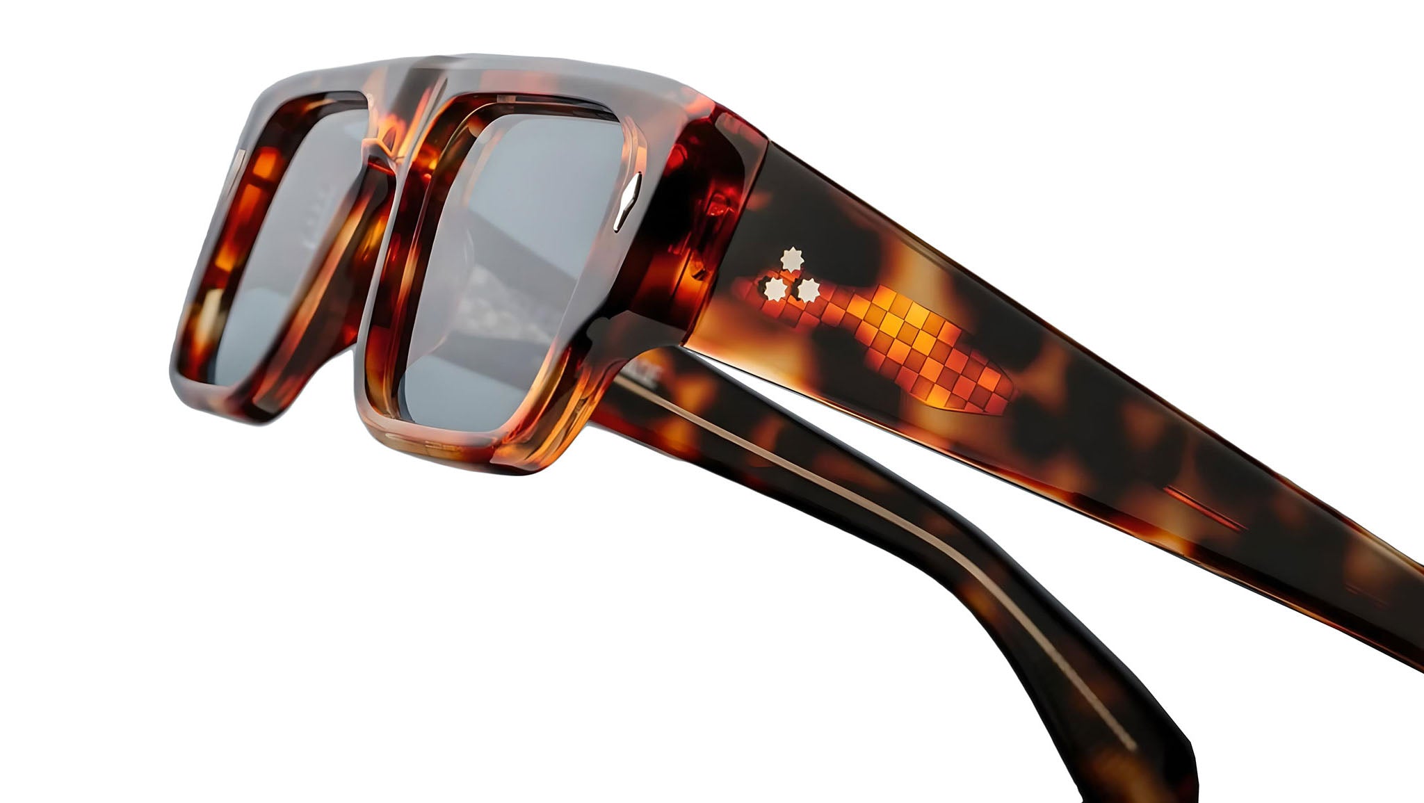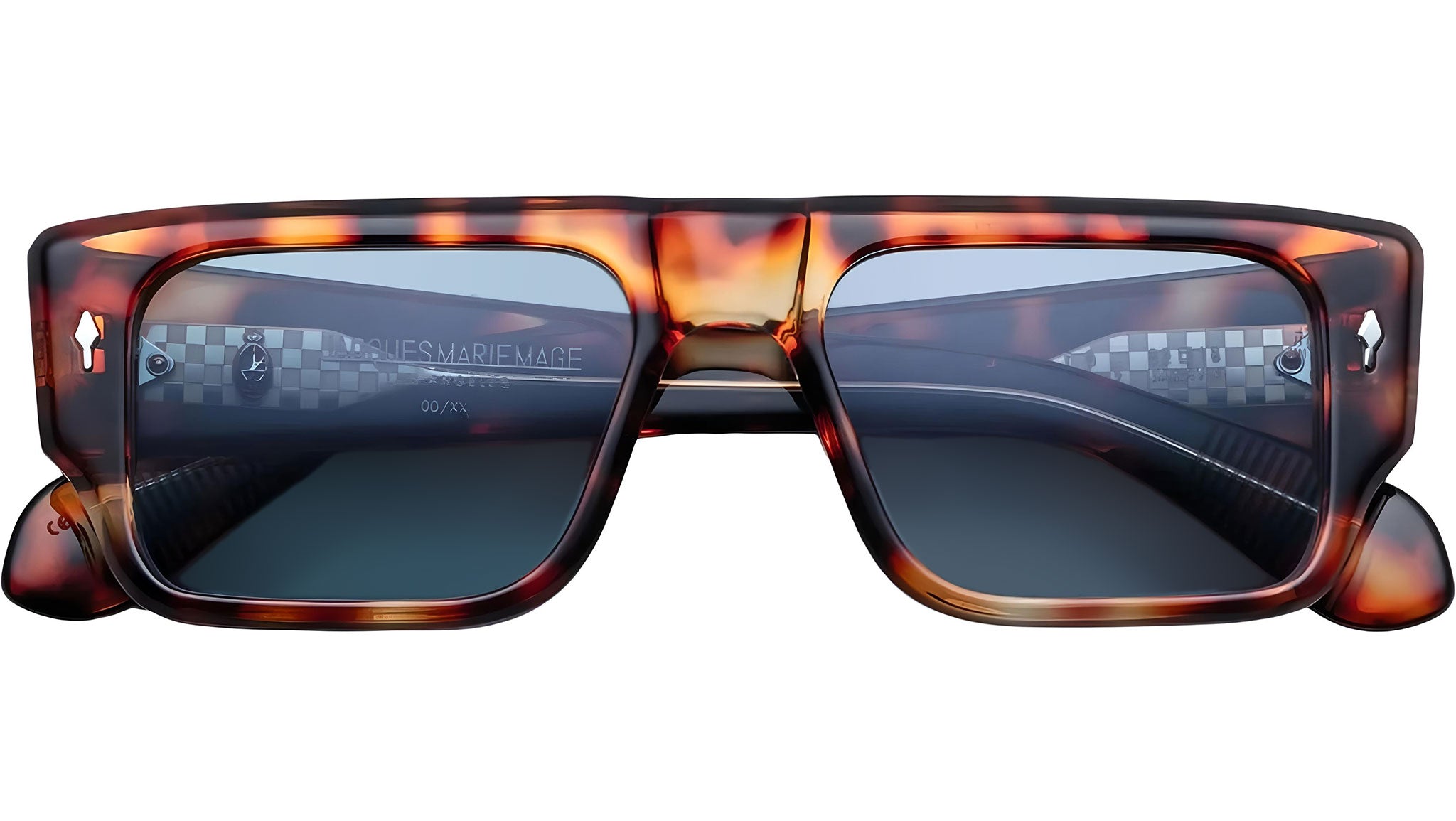 Jacques Marie Mage Devoto are luxuriant rectangular sunglasses featuring a strict brow line and a new wirecore checkboard design. Exert your seminal influence on the scene with these limited-edition glasses that, despite their straight edges, never fall flat. Unparalleled craftsmanship merges with dramatic punk energy, creating a bold statement that projects artistry and attitude while defying conventional platitudes.