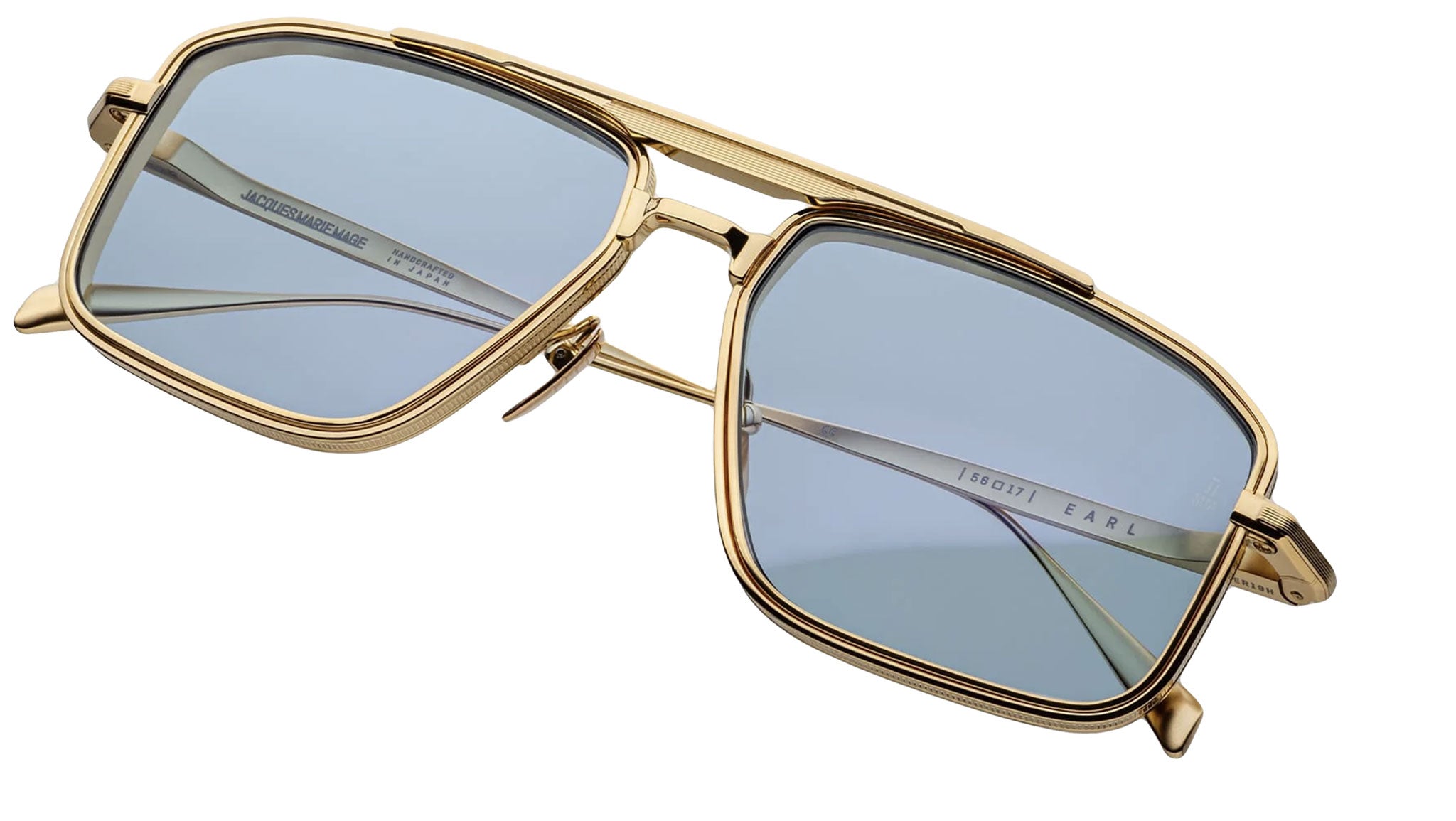 The Jacques Marie Mage Earl is a sleek, 1970s-inspired titanium navigator that blends vintage sophistication with contemporary precision. This limited-edition design features unique 4mm titanium lens-rim inserts and dual-tone detailing across the brow and temples, elevated by signature Art Deco embellishments. Crafted with refined resilience, the Earl stands as a tribute to bold vision and timeless style, embodying the spirit of maverick design and artisanal craftsmanship.