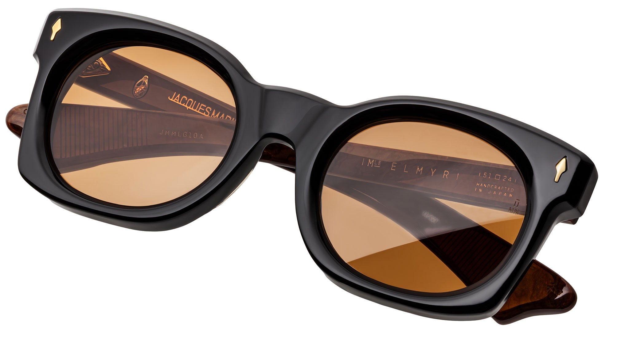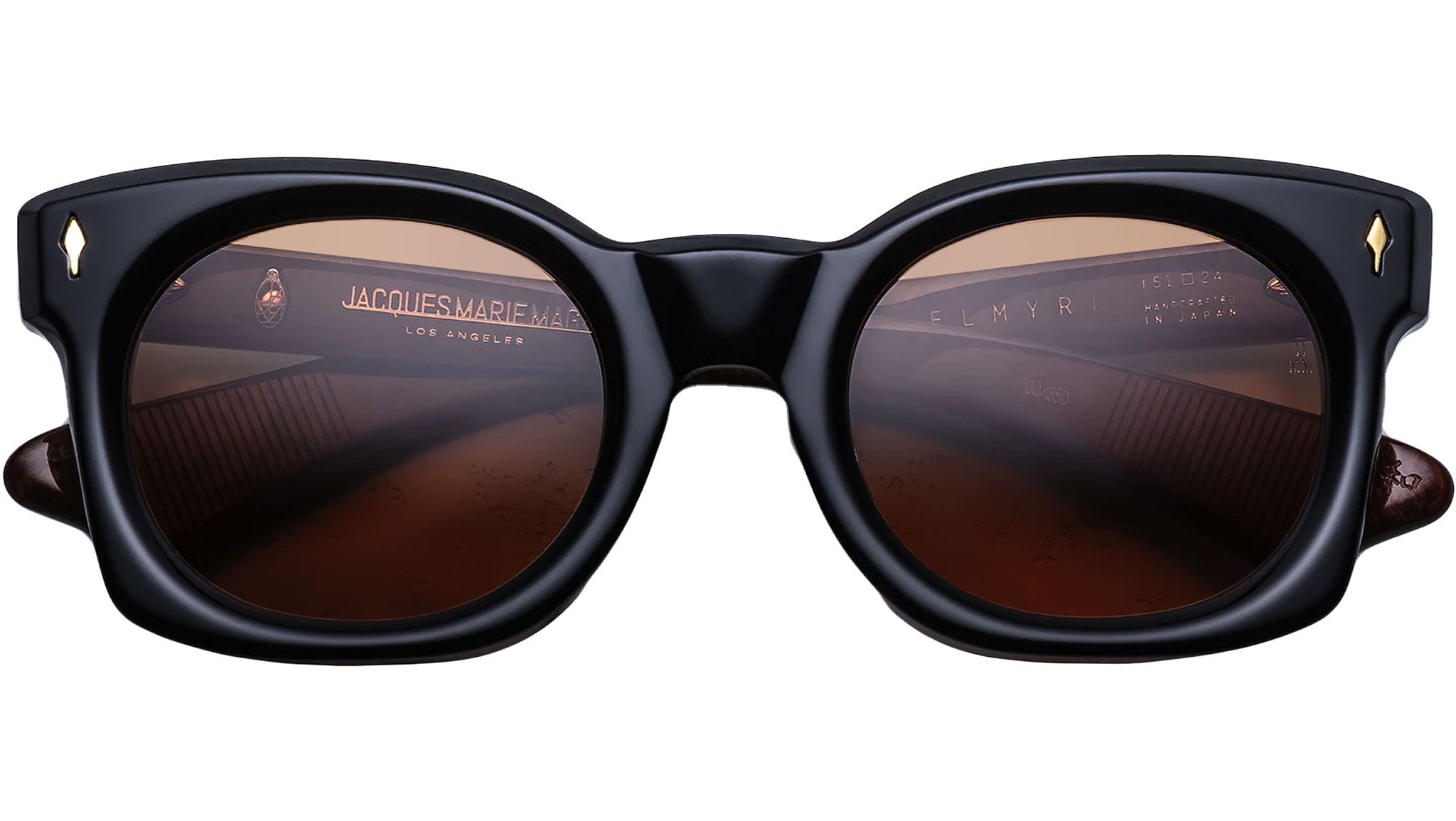 The Jacques Marie Mage Elmyr sunglasses are distinctive, beautifully beveled spectacles inspired by 1970s design, offering a medium fit and an expressive interplay of volumes and proportions. Crafted with refined precision, the frame features signature arrowhead front pins, spur-shaped rivets, and 'Classic' wirecores adorned with Art Deco-inspired hairline details. A bold yet sophisticated silhouette, the Elmyr embodies the search for authenticity through masterful craftsmanship and a confident challenge to convention.