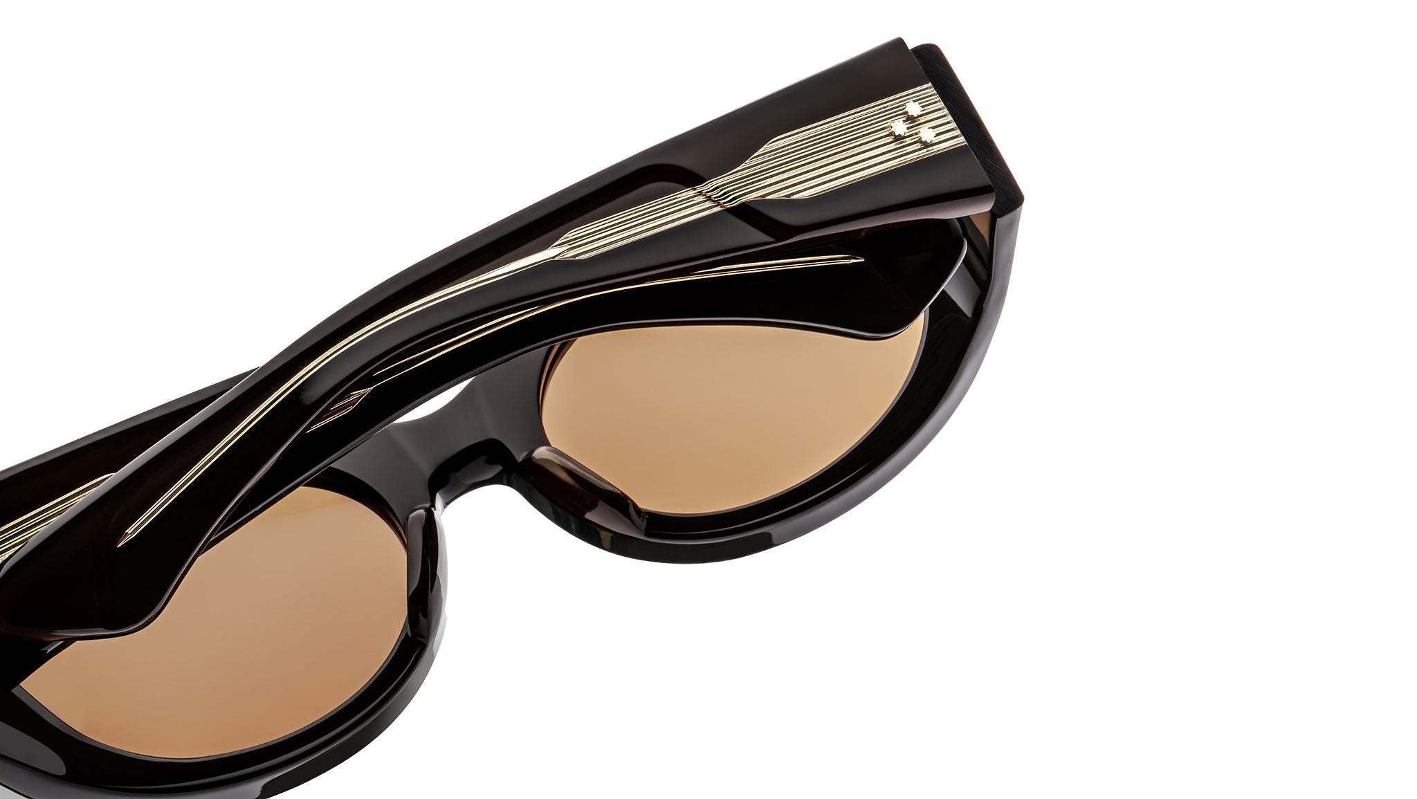 The Jacques Marie Mage Gia sunglasses channel the edgy elegance of the mid-1990s with their bold oval silhouette, soft wrap-around effect, and oversized temples adorned with sculptural detailing. Handcrafted in Japan, this refined design blends distinctive era-inspired cool with modern craftsmanship, making a confident statement of style and presence. Designed for high-profile settings and discerning individuals, the Gia is a striking embodiment of creative sophistication and poised individuality.