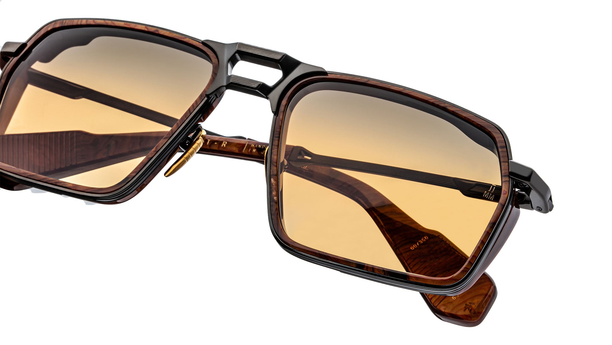 Jacques Marie Mage GT-R sunglasses are '70s-inspired titanium navigators reimagined with bold 12mm acetate lens-rim inserts, dual-tone double-bridge detailing, and sculptural acetate temples. Engineered for lightweight strength and visual impact, this design captures the sleek elegance and performance-driven spirit of a classic roadster, blending retro character with modern craftsmanship in a limited-edition silhouette.