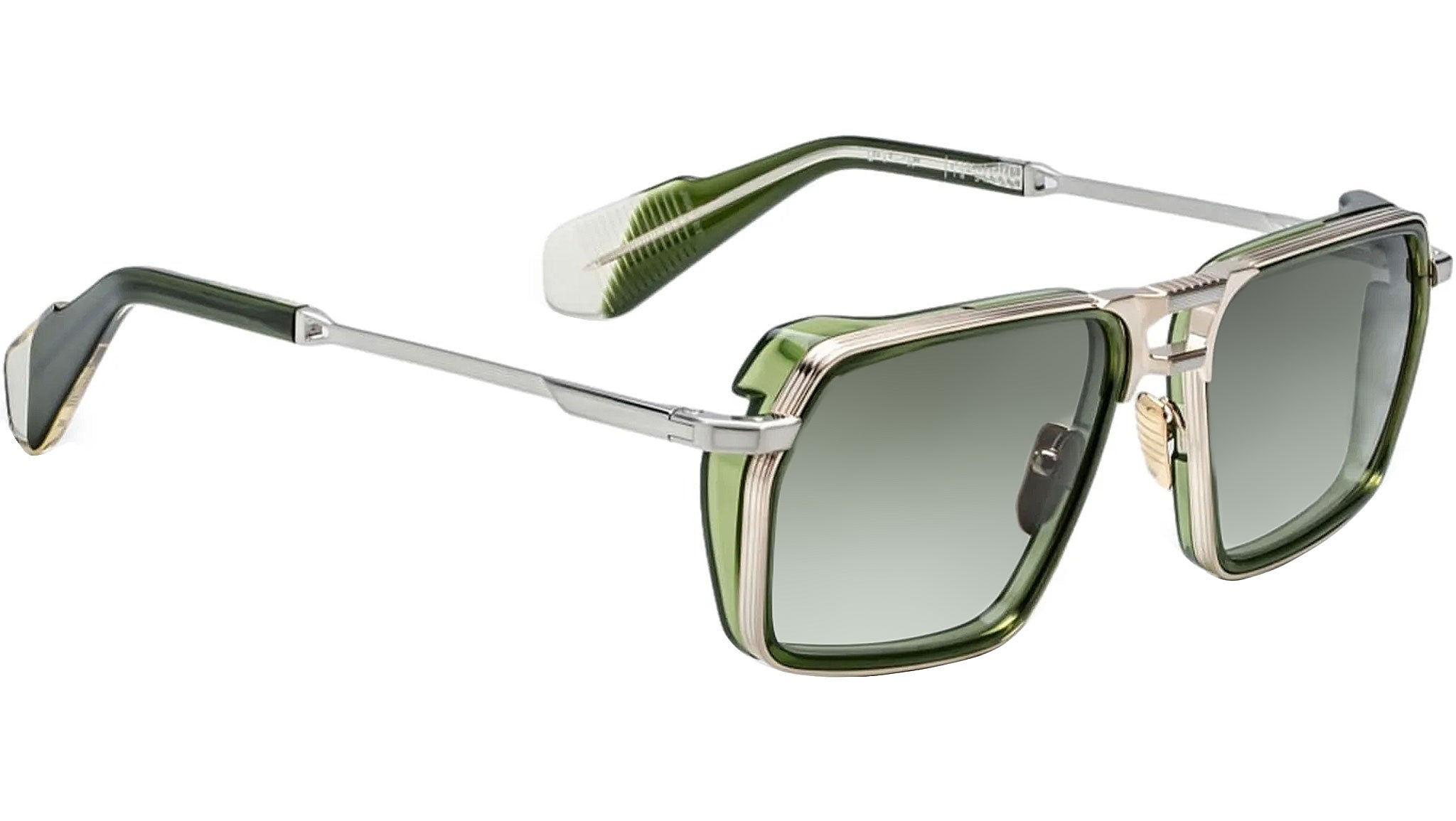 Jacques Marie Mage GT-R sunglasses are '70s-inspired titanium navigators reimagined with bold 12mm acetate lens-rim inserts, dual-tone double-bridge detailing, and sculptural acetate temples. Engineered for lightweight strength and visual impact, this design captures the sleek elegance and performance-driven spirit of a classic roadster, blending retro character with modern craftsmanship in a limited-edition silhouette.