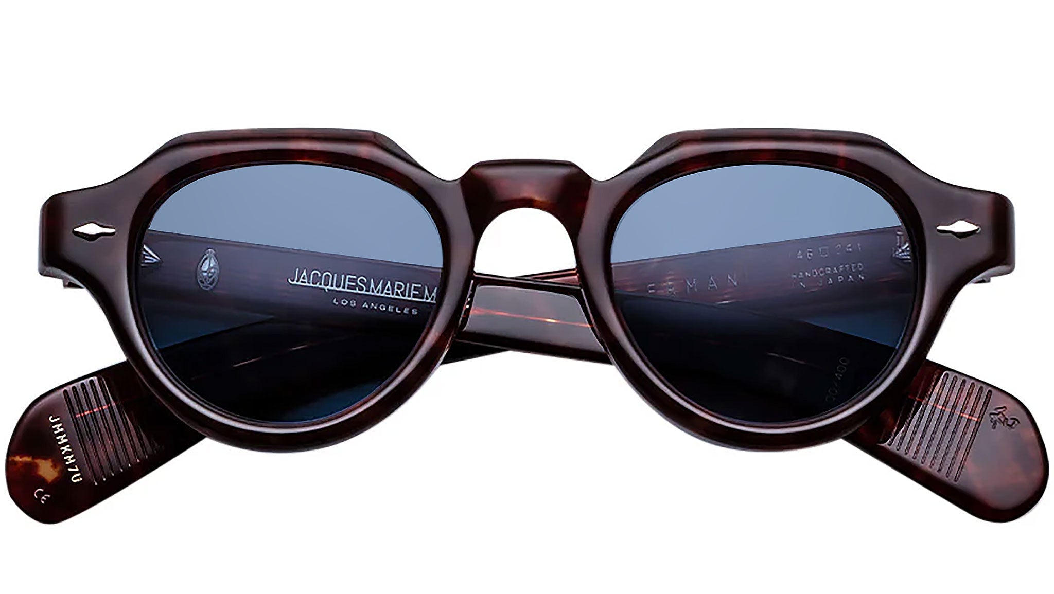 The Jacques Marie Mage Kellerman glasses are sculptural, limited-edition frames with a refined modified panto shape. Featuring signature precious metal arrowhead front pins, spur-shaped rivets, and custom 7-barrel hinges, these spectacles are a testament to precision and poise. Inspired by French cavalry general François Étienne de Kellerman, they embody bold design and meticulous craftsmanship, offering a timeless statement rich in character and resilience.