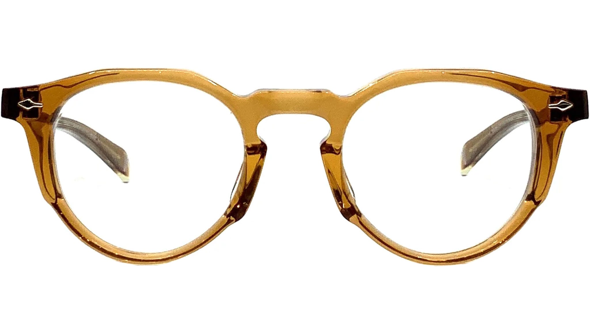 The ruggedness of the Western frontier meets the elegance of the Victorian age in these sturdy, refined spectacles that feature our custom mono-block hinge adorned with Art Deco hairline details and contrast color rivets. Handcrafted in Japan.