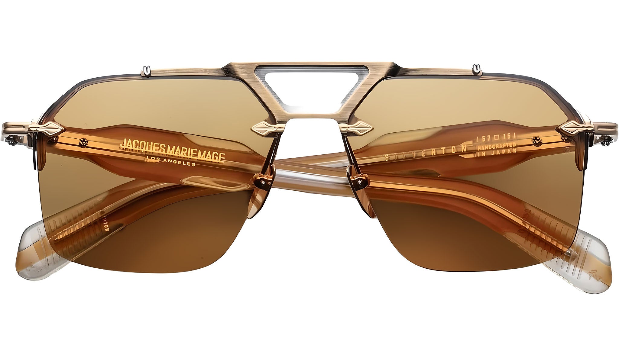 Jacques Marie Mage Silverton, a striking new addition to the Rimless Series, features a titanium nose-and-brow bridge with dual-tone details and sculptural acetate temples adorned with wirecore embellishments. With roots in the high country and aspirations in the big city, these new rimless designs are an extraordinary expression of craftsmanship, showcasing a connected nose-and-brow bridge with contrasting precious metal accents and sculpted acetate temples featuring signature wirecore designs.