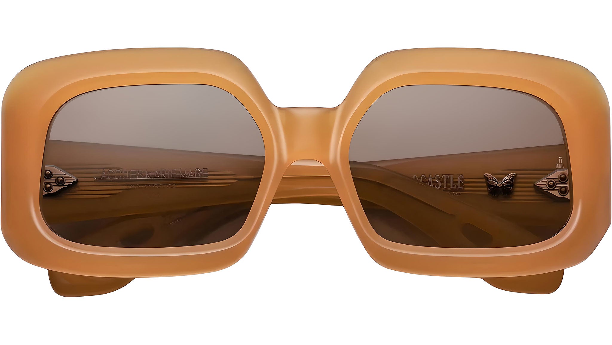 Jacques Marie Mage Starcastle is a rectangular, super-’70s-inspired statement piece with a medium fit, handcrafted in Italy. Featuring a new 7-barrel hinge, ‘Cantilever' wirecore with hairline details, and temple tip eyelets for a custom eyewear chain, these frames emerge from the brightest corners of the mind. Intimate and audacious, they are companions for envisioning the future, offering an aesthetic as if from a dream, a dream trying to tell you something.