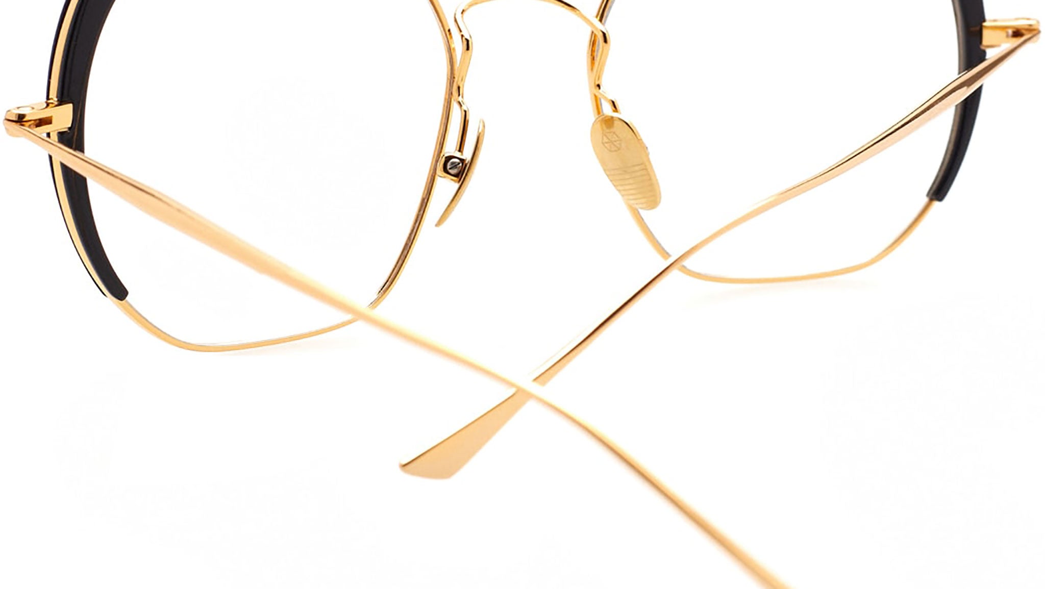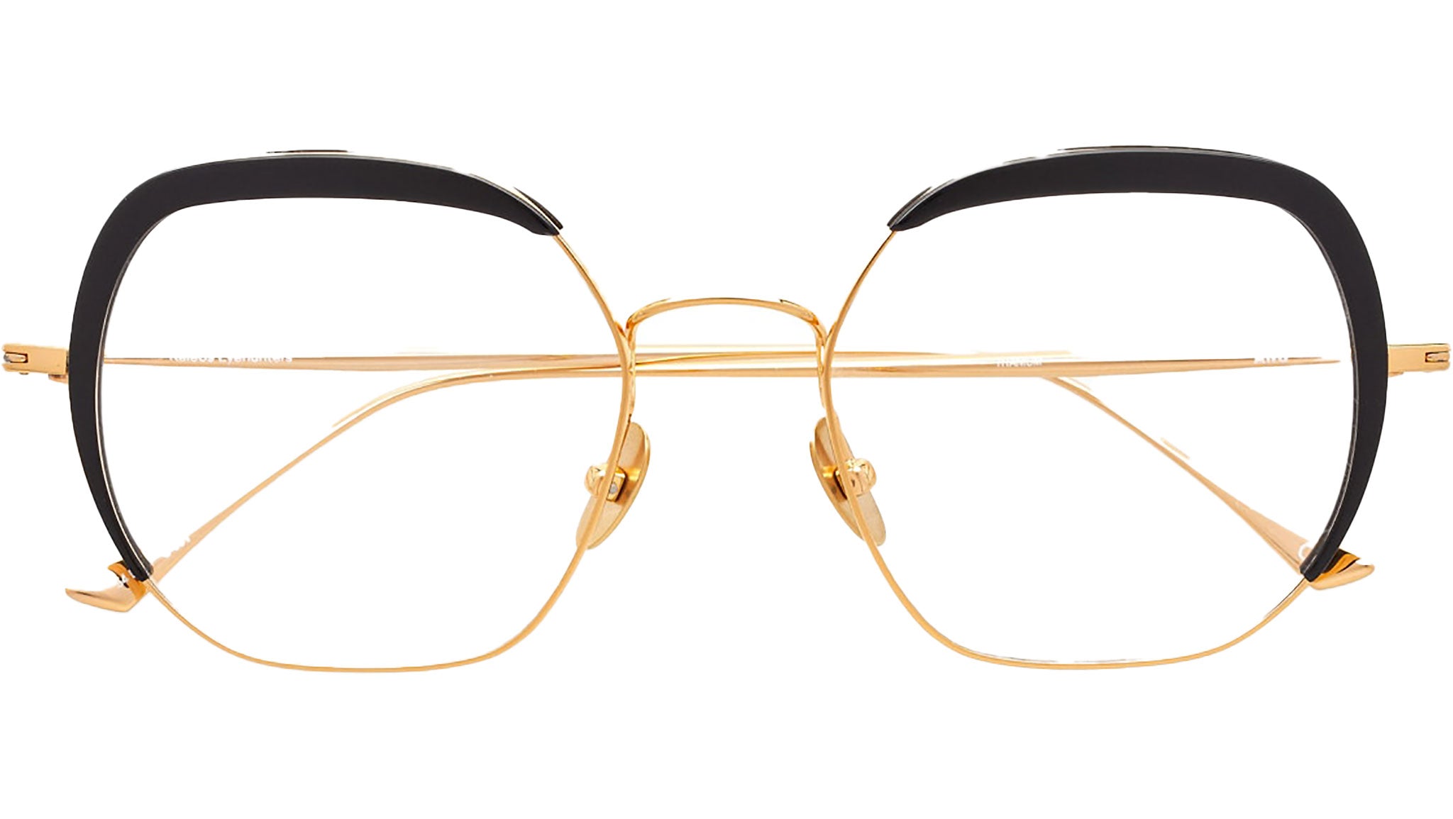 Gli occhiali da vista Aird 1 in titanio e acetato di Kaleos sono una lussuosa combinazione di moda e innovazione. Le montature nere monocromatiche opache sono accentuate da una profilatura e un ponte in titanio color oro, con naselli e astine regolabili per una perfetta vestibilità. Realizzati a mano con materiali di alta qualità e costruzioni complesse, questi occhiali unici combinano gusto contemporaneo e funzionalità.