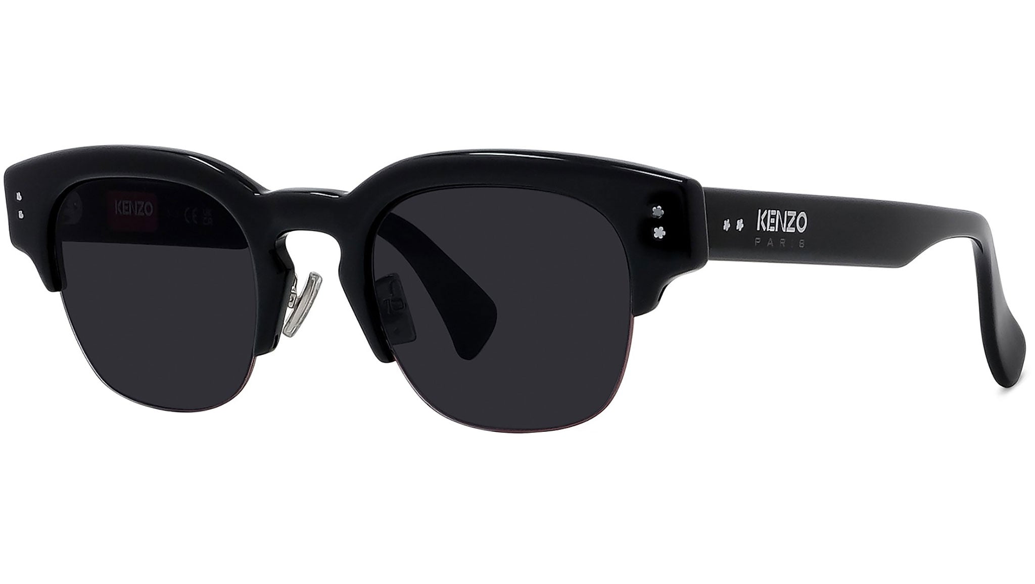 Occhiali da sole KENZO uomo linea Boke Flower modello KZ40179U 01A nero. Una nuova montatura elegante, ispirata al vintage, arricchita da fiori boke sulla parte frontale e sulle tempie, una placca in metallo interna con logo e speciali grip alle estremità. Una costruzione unica con filo di nylon colorato. Modello presentato durante la sfilata estate 2024. Rivenditore autorizzato KENZO online. Gli occhiali vengono consegnati con custodia e accessori originali.