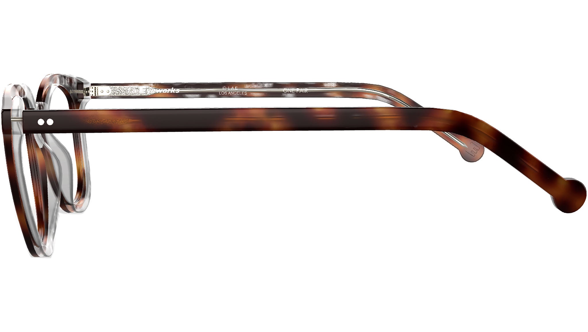 Occhiali da vista l.a. Eyeworks Hardy 154 Tortoise. Originali, a volte irriverenti e sempre rivitalizzanti, gli occhiali disegnati da l.a.Eyeworks sono immediatamente riconoscibili per le loro forme audaci, la gestione fantasiosa dei materiali e l'uso espressivo del colore. Anche se gli occhiali l.a.Eyeworks sono stati indossati da celebrità, stelle del palcoscenico, artisti e atleti, l'intento più profondo del brand è di poter offrire una montatura che non si conformi a nessuna sensibilità della moda, se non la propria visione.