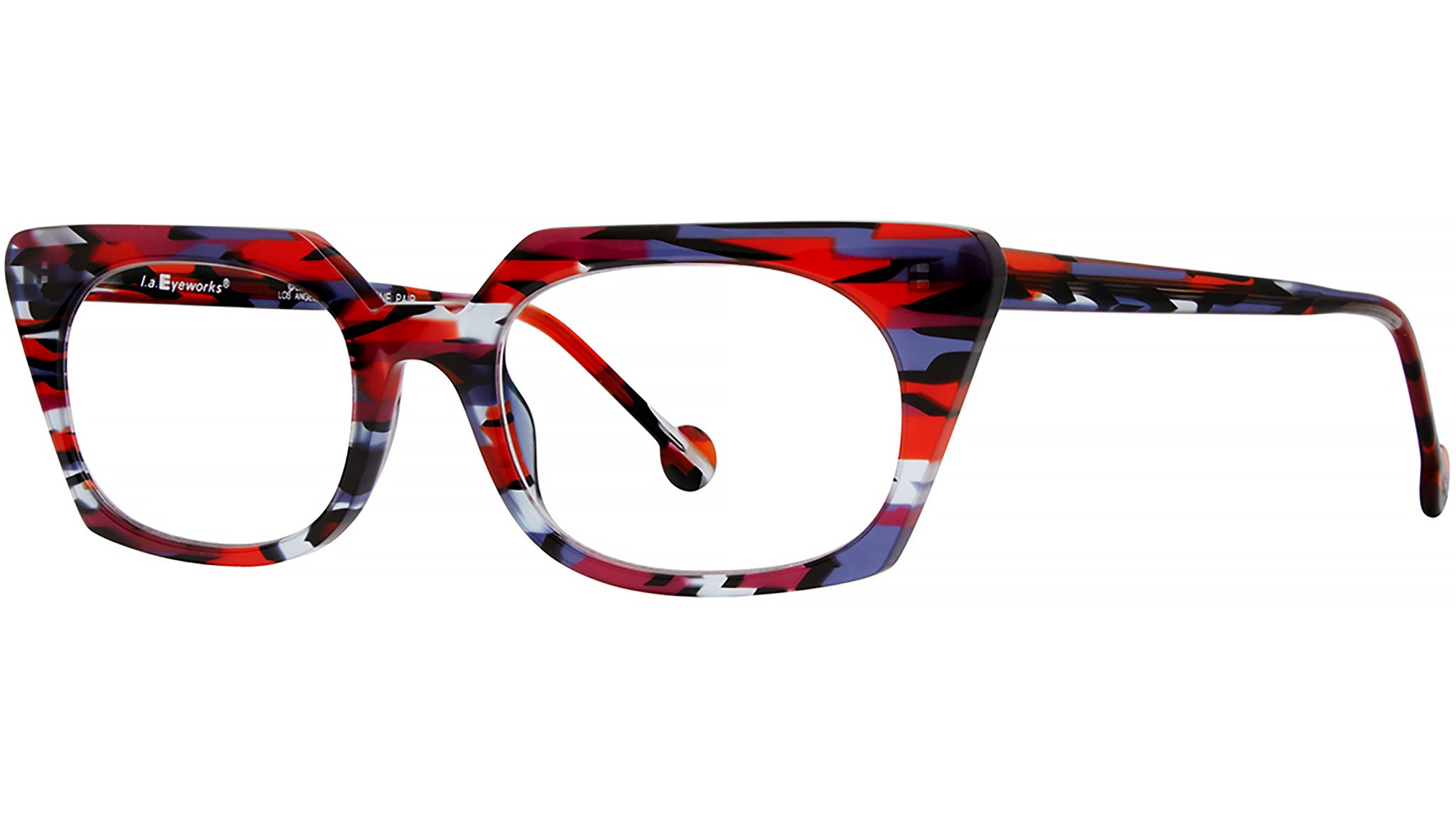 Occhiali da vista l.a. Eyeworks Sailor 985 Faceted Red Blue. Originali, a volte irriverenti e sempre rivitalizzanti, gli occhiali disegnati da l.a.Eyeworks sono immediatamente riconoscibili per le loro forme audaci, la gestione fantasiosa dei materiali e l'uso espressivo del colore. Anche se gli occhiali l.a.Eyeworks sono stati indossati da celebrità, stelle del palcoscenico, artisti e atleti, l'intento più profondo del brand è di poter offrire una montatura che non si conformi a nessuna sensibilità della moda, se non la propria visione.