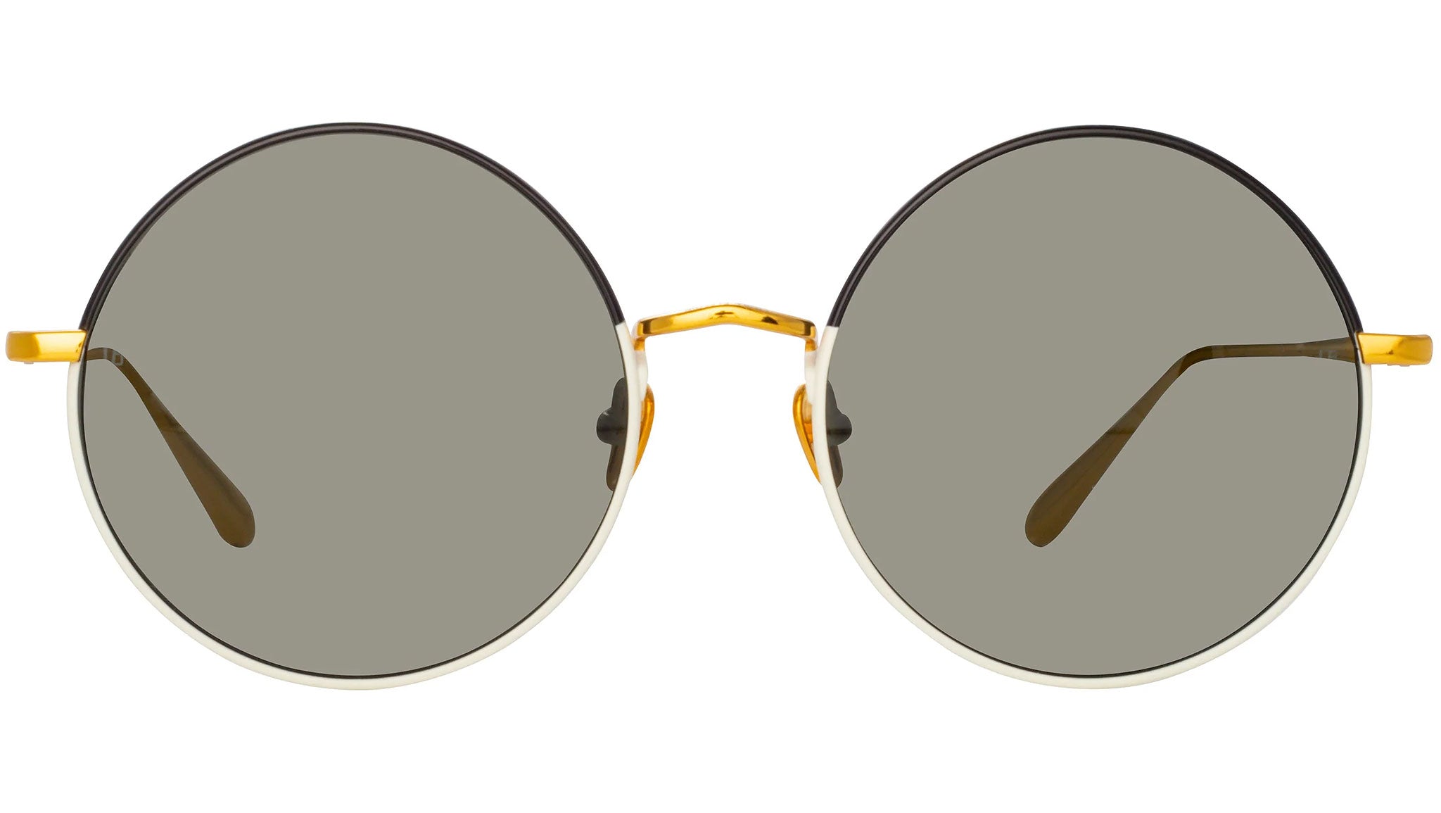 Gli occhiali da sole Linda Farrow Bea incarnano una modernità raffinata, con il loro design rotondo e semplice. Realizzati in puro titanio giapponese, presentano una montatura placcata in oro giallo 22 carati con un suggestivo bordo color nero dipinto a mano. Le aste, firmate Linda Farrow, si estendono con grazia dalle cerniere fino alla punta arrotondata, migliorando il comfort di chi le indossa. Le lenti con tecnologia ZEISS assicurano un effetto antiriflesso e una protezione UV completa, unendo funzionalità e design elegante.