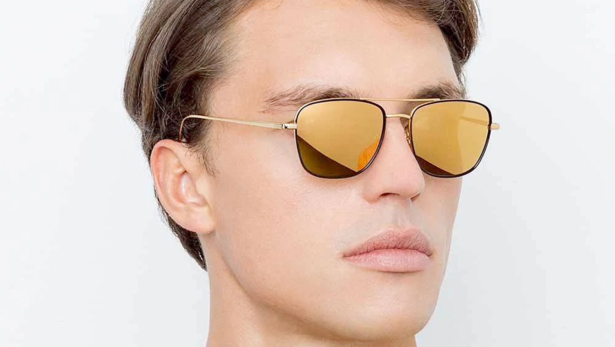 Taking influence from Slim Aarons portraits of the international elite in their exclusive poolside playgrounds, these mens rectangular aviator sunglasses are crafted from luxurious 18-22 carat yellow gold-plated hypoallergenic lightweight titanium. Co-ordinating yellow gold precious lenses are given a sophisticated contrasted with black Italian acetate inner windsor rims.