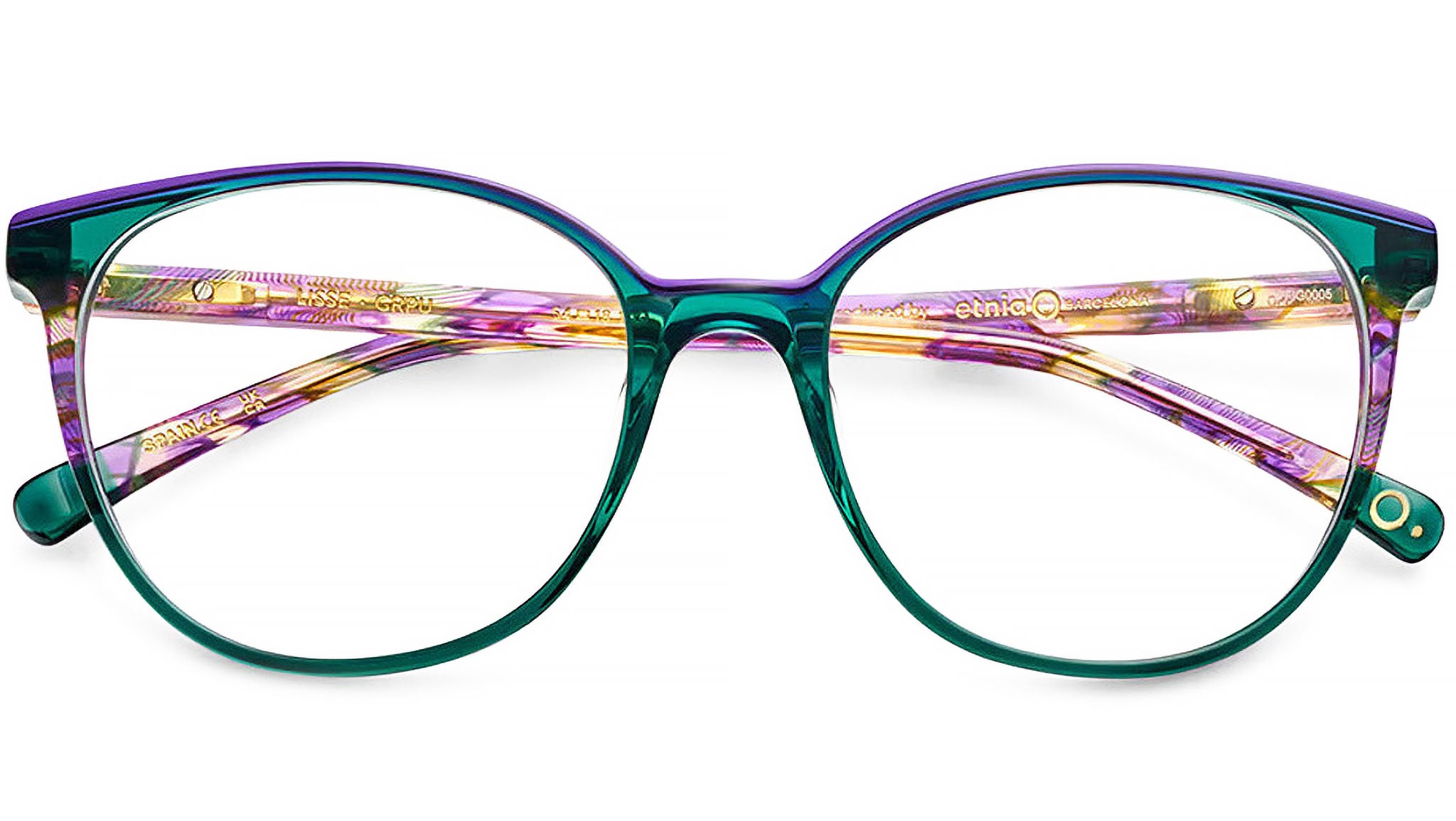 Occhiali da vista Etnia Barcelona LISSE in acetato verde / viola con lenti demo. Codice modello: LISSE 54O. Codice colore: GRPU. Rivenditore autorizzato online Etnia Barcelona. Gli occhiali vengono forniti con custodia e accessori originali e sono coperti dalla garanzia standard del produttore di 12 mesi.