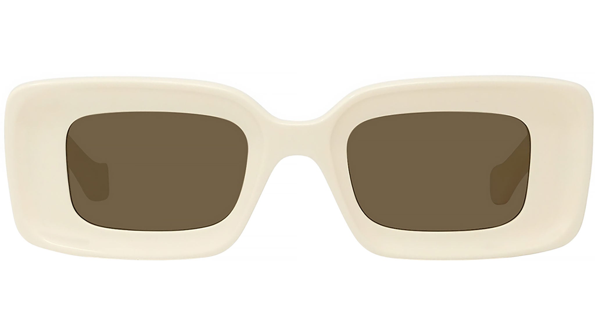 Occhiali da sole LOEWE donna linea Anagram modello LW40101I 25E avorio. Forma rettangolare con uno smusso scolpito innovativo, ispirata alla forma originale di Paula's Ibiza e reinterpretata in modo più semplice, con il logo anagramma sulle aste - Rivenditore autorizzato LOEWE online. Gli occhiali vengono consegnati con custodia e accessori originali.