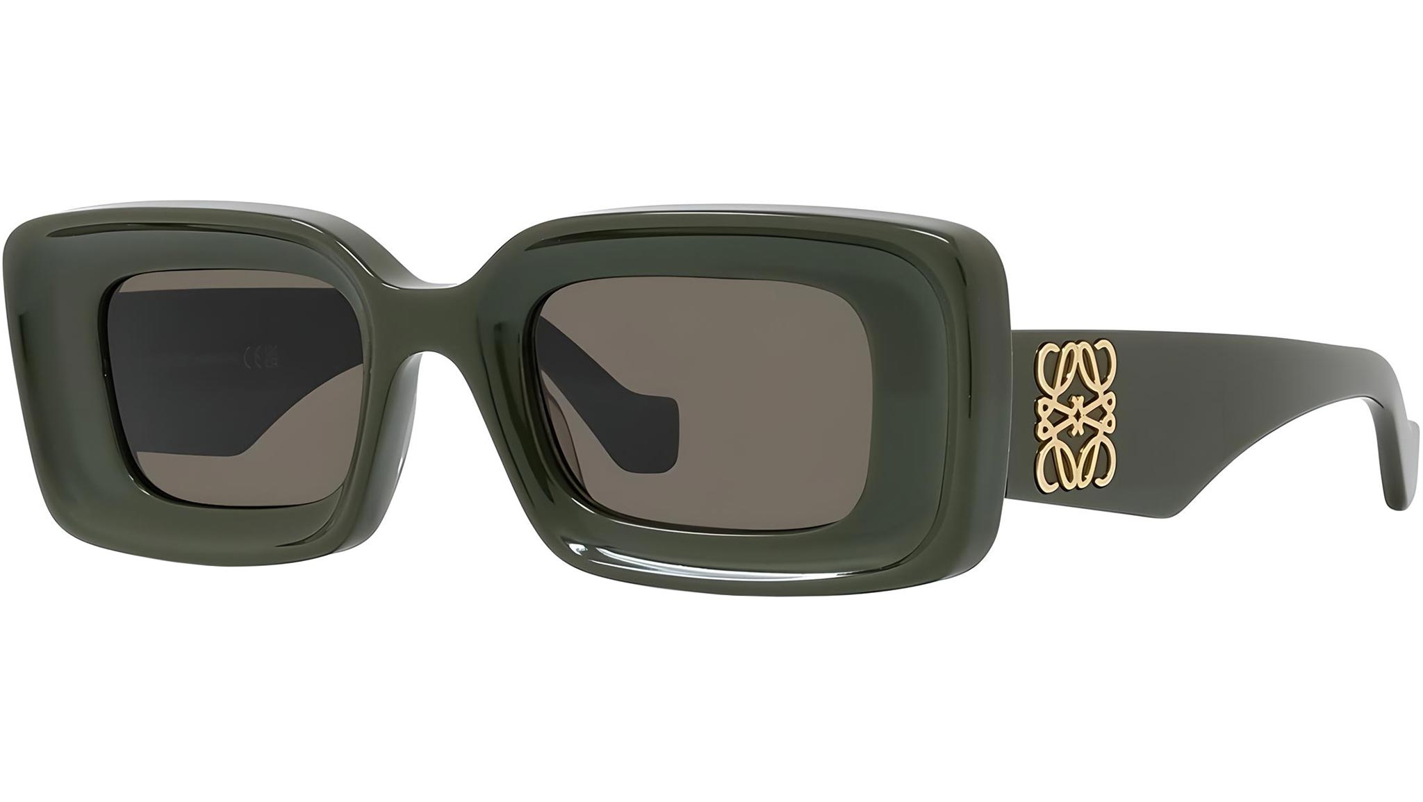 Occhiali da sole LOEWE donna linea Anagram modello LW40101I 96E khaki solido. Forma rettangolare con uno smusso scolpito innovativo, ispirata alla forma originale di Paula's Ibiza e reinterpretata in modo più semplice, con il logo anagramma sulle aste - Rivenditore autorizzato LOEWE online. Gli occhiali vengono consegnati con custodia e accessori originali.