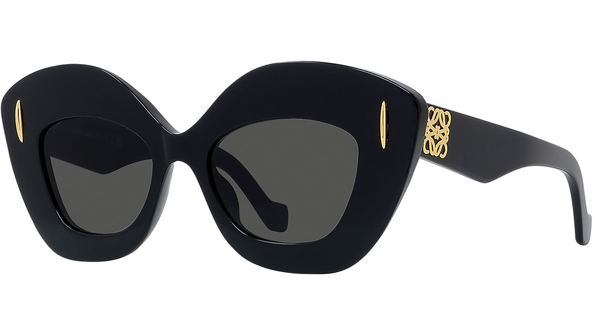 Occhiali da sole LOEWE donna linea Anagram modello LW40127I 01A nero lucido. Nuova forma cat eye per la linea Screen della famiglia Anagram, con un frontale super piatto arricchito da abbellimenti in metallo e anagramma decorativo sulle aste. - Rivenditore autorizzato LOEWE online. Gli occhiali vengono consegnati con custodia e accessori originali.