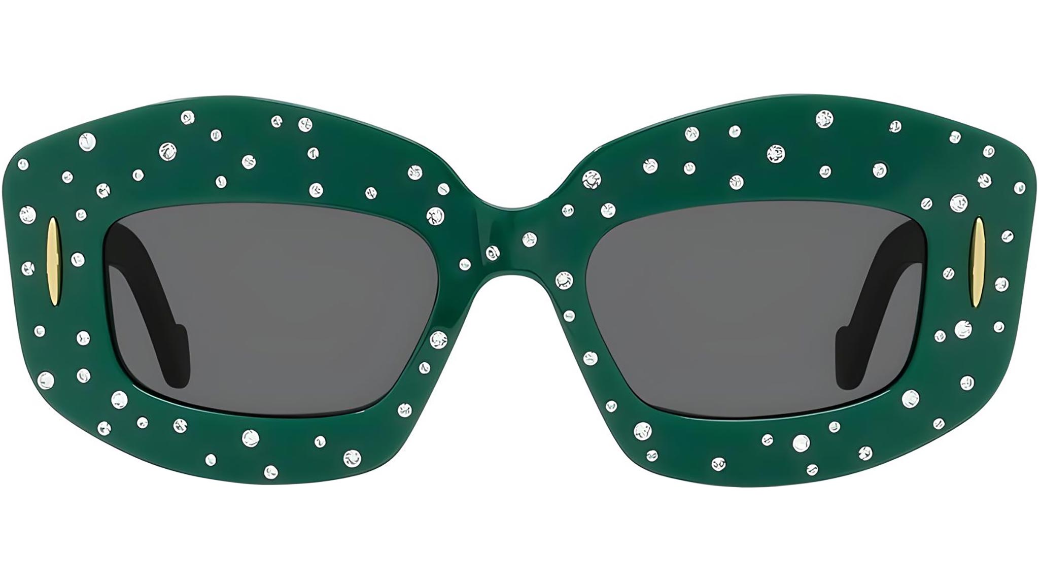 Occhiali da sole LOEWE donna linea Anagram modello LW4114IS 96A verde scuro solido. Squisita declinazione della forma Anagram Screen lanciata in autunno, per uno stile alla moda, con delicati strass applicati a mano. In risalto durante la sfilate di moda maschile della Maison - Rivenditore autorizzato LOEWE online. Gli occhiali vengono consegnati con custodia e accessori originali.