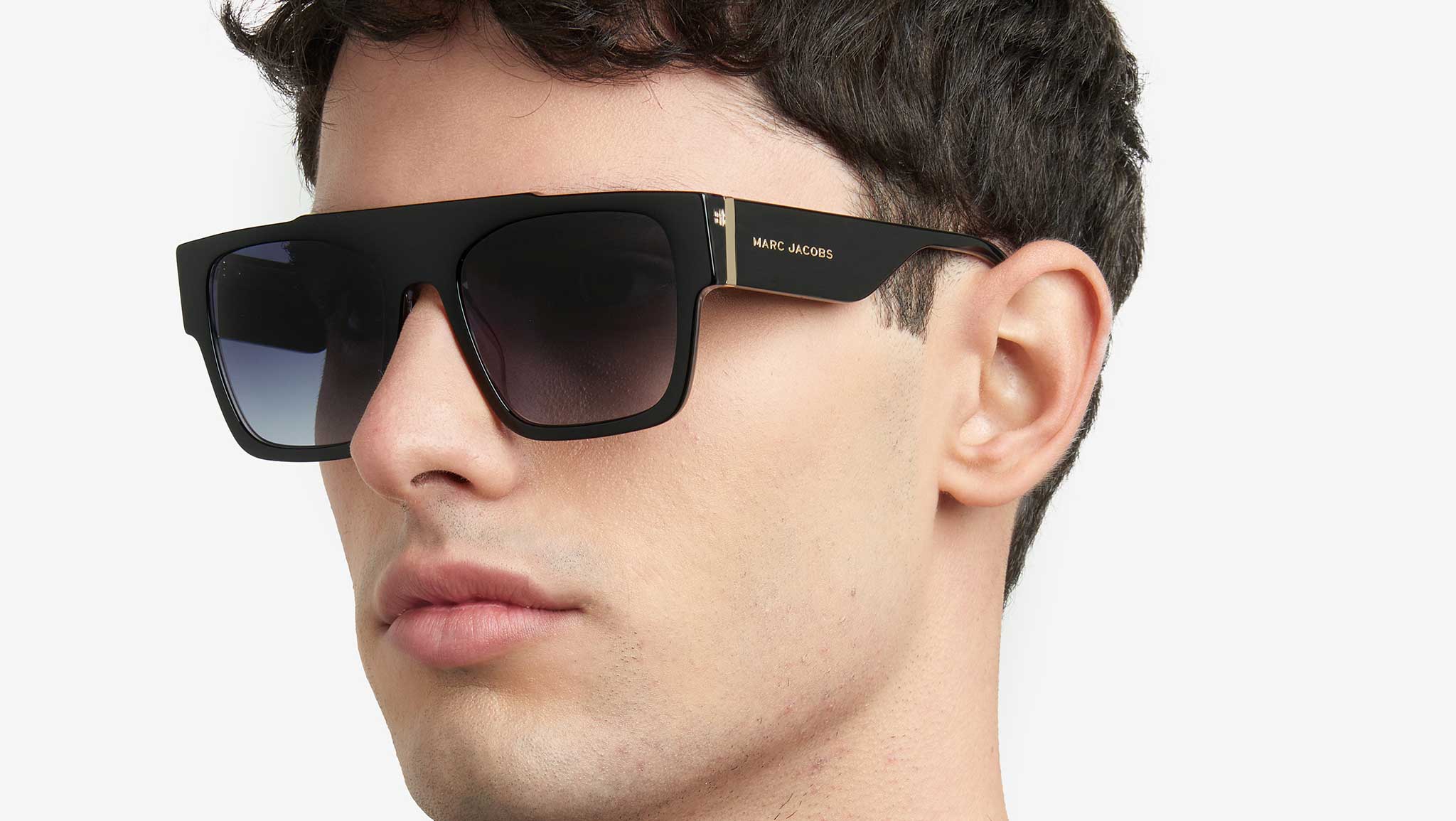Occhiali da sole Marc Jacobs modello MARC 757/S codice colore 1EI 9O in acetato nero pattern grigio con lenti color grigio scuro sfumato. L'estetica inconfondibile dell'eyewear da uomo Marc Jacobs si nota nei distintivi dettagli in metallo che definiscono questi occhiali da sole in acetato, per un look audace e maschile. La silhouette pilot presenta un ciliare piatto con una placca in metallo logata, dettagli metallici raffinati sui musetti, e nuove aste ultra-thick che creano un look dal forte impatto da qualsiasi angolazione. Queste montature sono disponibili in una palette essenziale di grigio e nero, con lenti tinta unita o sfumate. Rivenditore autorizzato online Marc Jacobs.