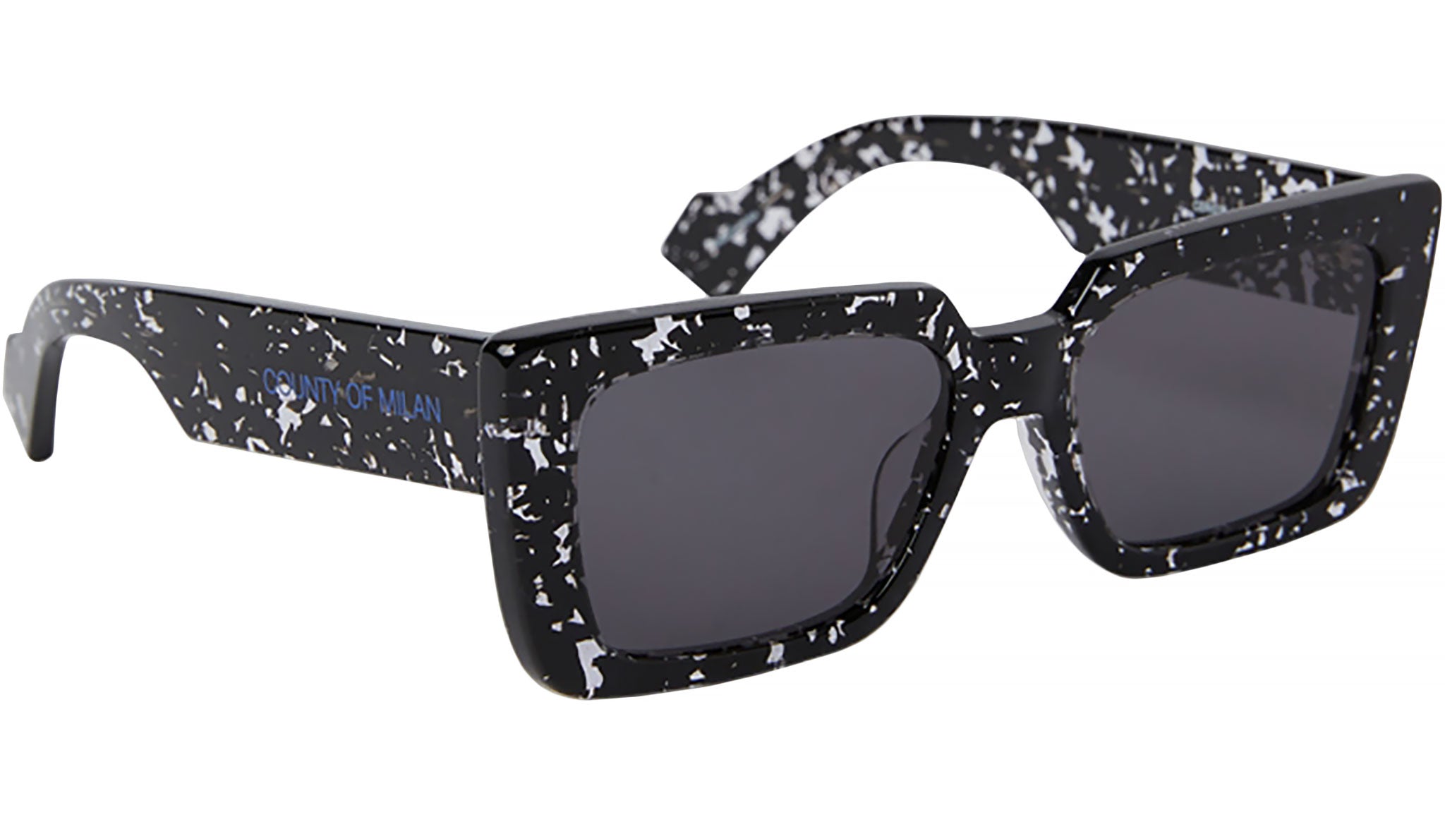 Tecka di Marcelo Burlon County of Milan, audace montatura rettangolare oversize con i lati leggermente rivolti verso l'alto e un gradino geometrico sul ponte. Richiama una delle forme più amate, gli occhiali da sole Tecka sono un modello senza tempo. Le aste presentano il nuovo logo "Marcelo Burlon County of Milan" impresso su entrambi i lati.