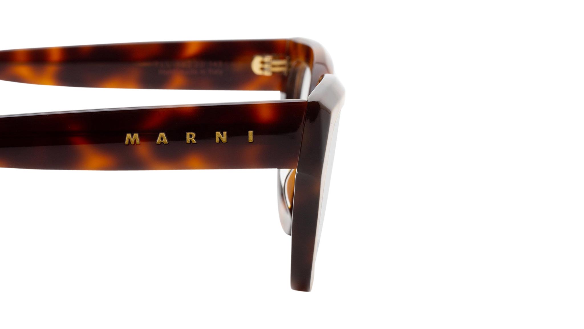 Hallerbos Forest is a unique Optical frame that pushes the limits of eyewear design. Essential, yet unique, these frames capture the essence of Marni’s style, stretching the limits of fitted eyewear and proposing a more playful, oversized version of everyday designs. This squared model features a raised brow-line and deeply set nose-bridge for a sharp profile. It comes in a warm Havana acetate. Sizes: R / R Lens Width: 53 mm. Frame Front: Frame Side: 145 mm. Product Code Size R: 7LL Product Code Size R: 9JO
