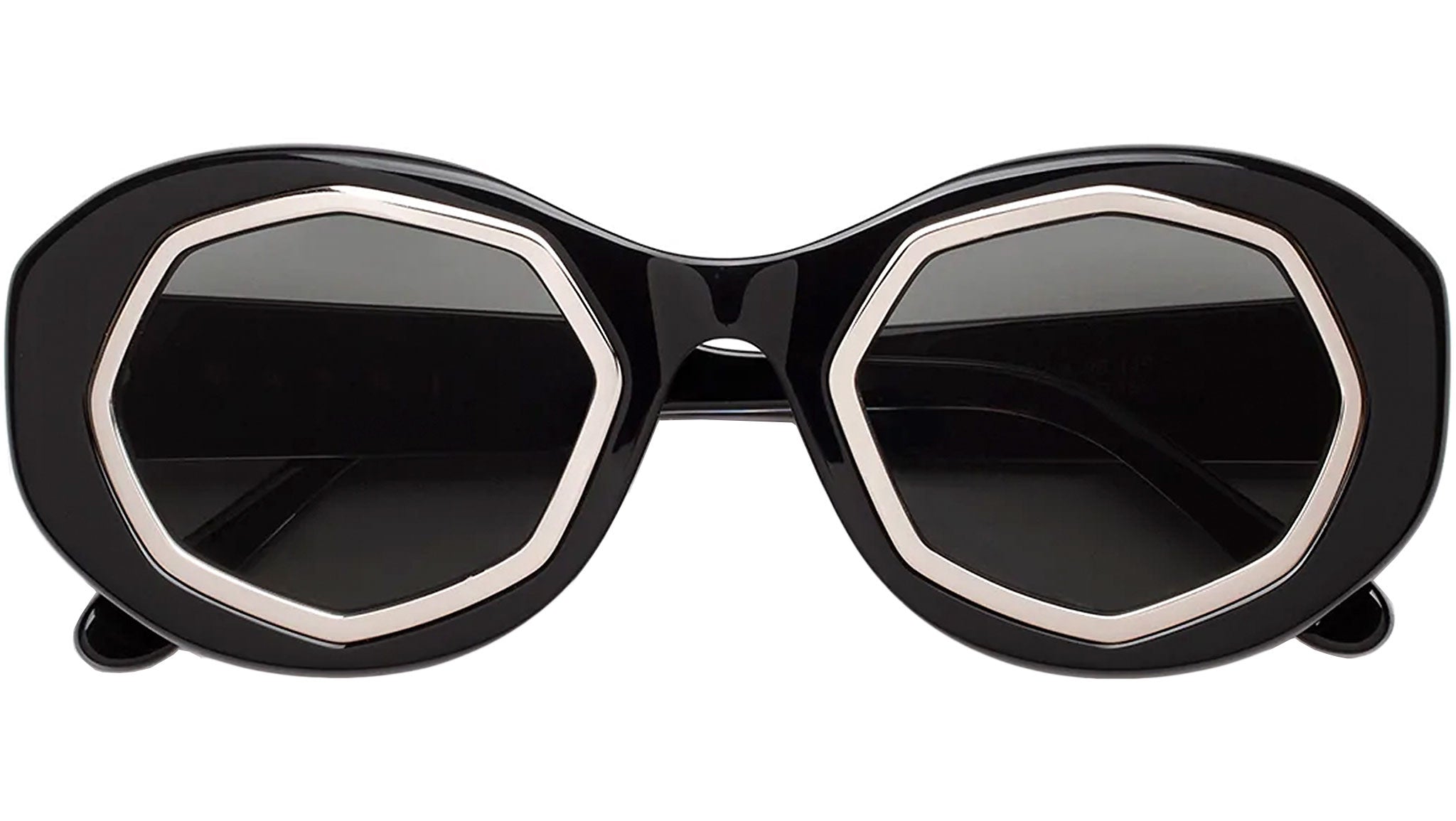 Mount Bromo reinterprets classic oversized frames for a new era. Cutting-edge stylistic references define Mount Bromo’s identity, at the intersection of vintage glamour and grunge chunky shapes. Exceptional craftsmanship elevates Mount Bromo’s design to an artful piece, with rings around the lenses encased within shiny acetate construction. This version features a black acetate with silver detailing and black lenses.