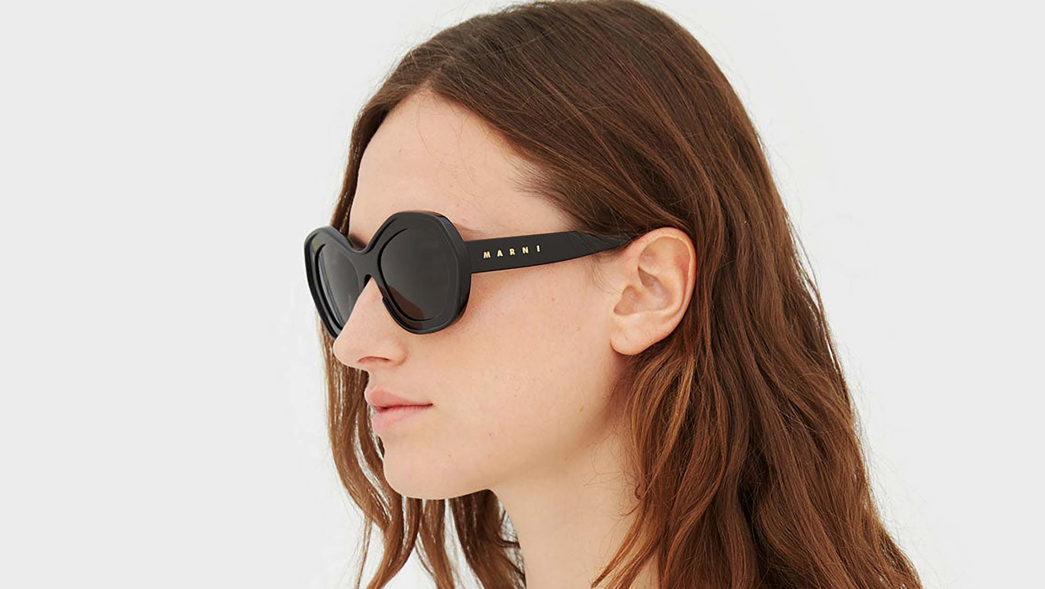 Designed exclusively for Marni, Ulawun Vulcano is a quirky silhouette that matches the vintage aesthetics of oversized grandma shapes with bold grunge references. This oversized model features wide lenses encased within chunky rims that are rounded on the inside, with chiselled geometric lines on the outside of the frame. A lowered nose-bridge and sleek arms complete this model designed for those open to experimenting with style. This model comes in black acetate with matching lenses. Sizes: R Lens Width: 54 mm. Frame Front: Frame Side: 145 mm. Product Code Size R: J5B