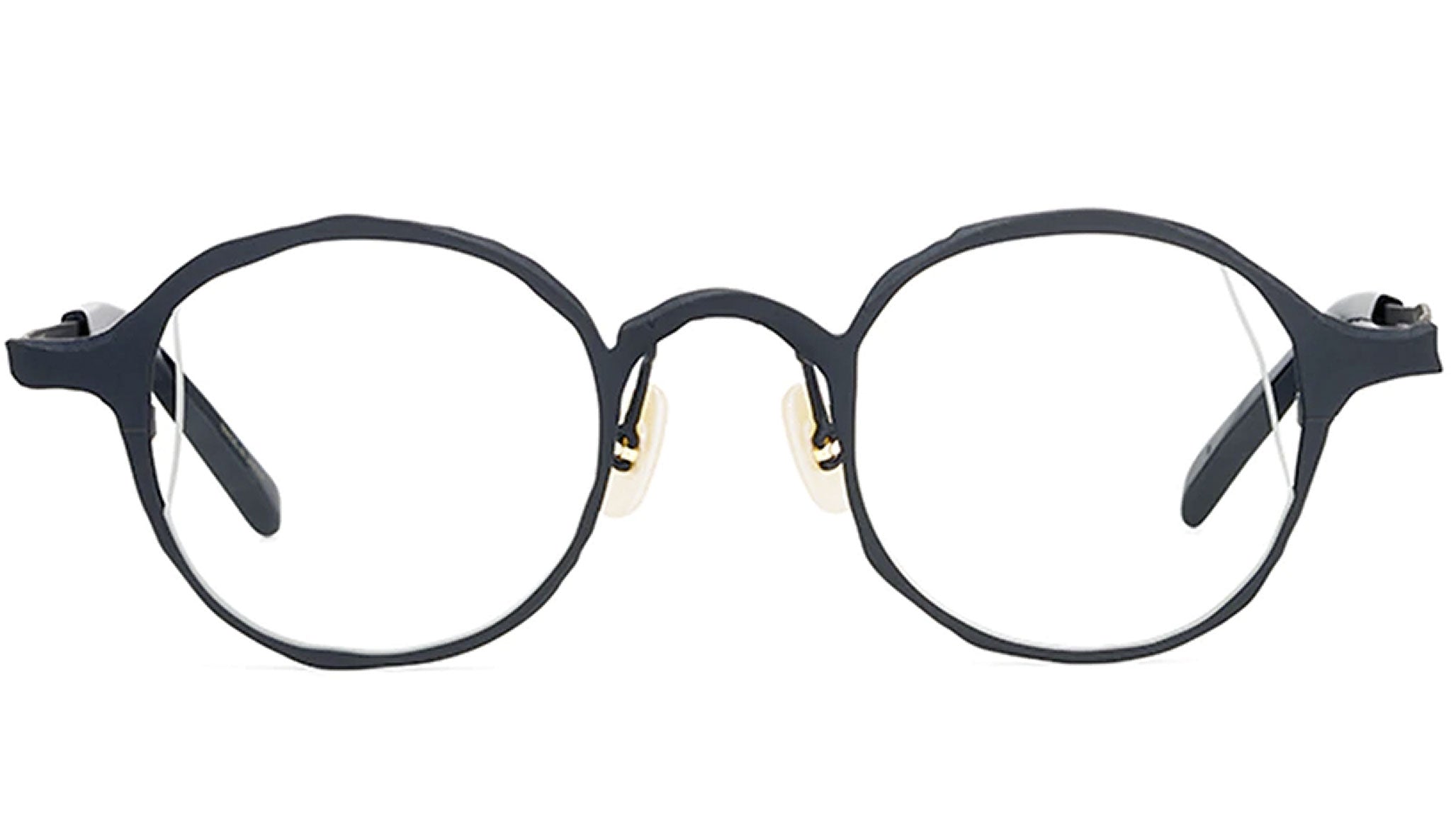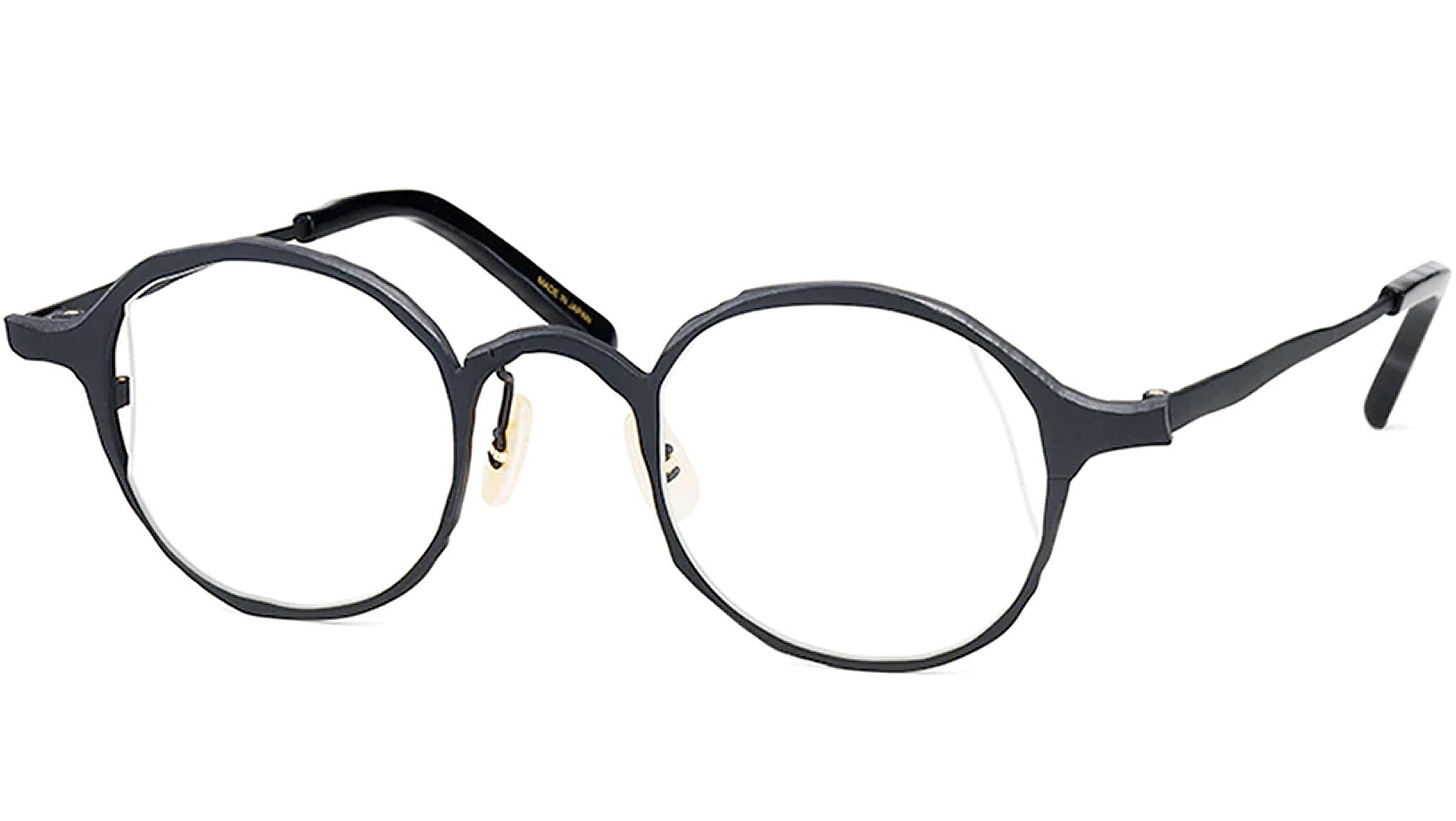 Masahiro Maruyama Sculpt collection is inspired by the sculptural process, from the tool marks of a chisel on stone, the space created in the gaps between piled pieces of clay, to the wire framework built for the process. Unisex. Frame crafted in pure titanium with β titanium and acetate temple. Handmade in Sabae City in Fukui, Japan. Attachment: Case and cleaning cloth.