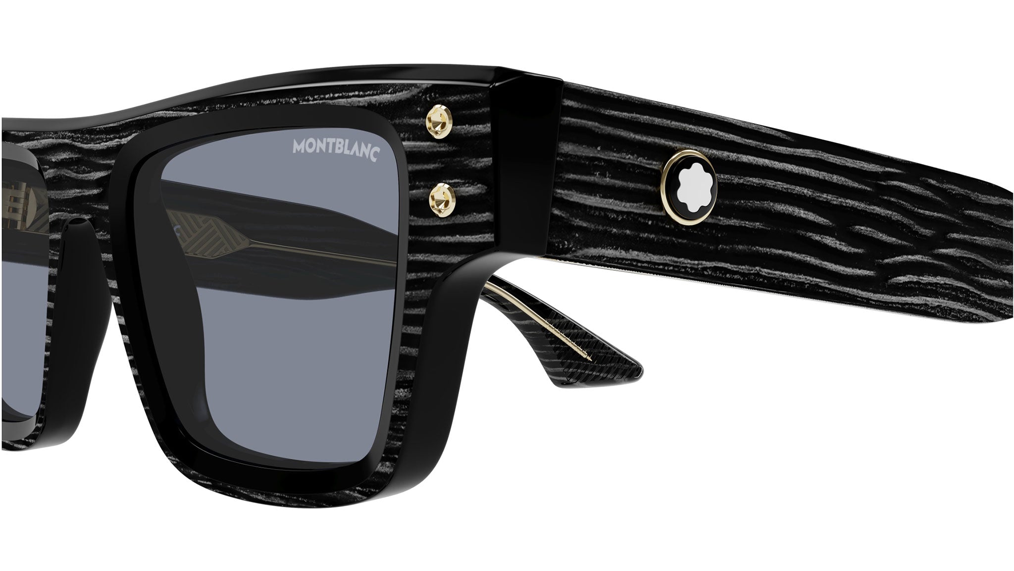 Occhiali da sole Montblanc MB0253S 011 uomo con montatura rettangolare in acetato riciclato nero solido lucido con motivo corteccia e lenti grigio tinta unita. Linea: Snowcap. Codice modello: MB0253S. Codice colore: 011. Made in Italy. Rivenditore autorizzato Montblanc online. Gli occhiali vengono consegnati con custodia e accessori originali e sono coperti dalla garanzia ufficiale di 12 mesi del produttore.