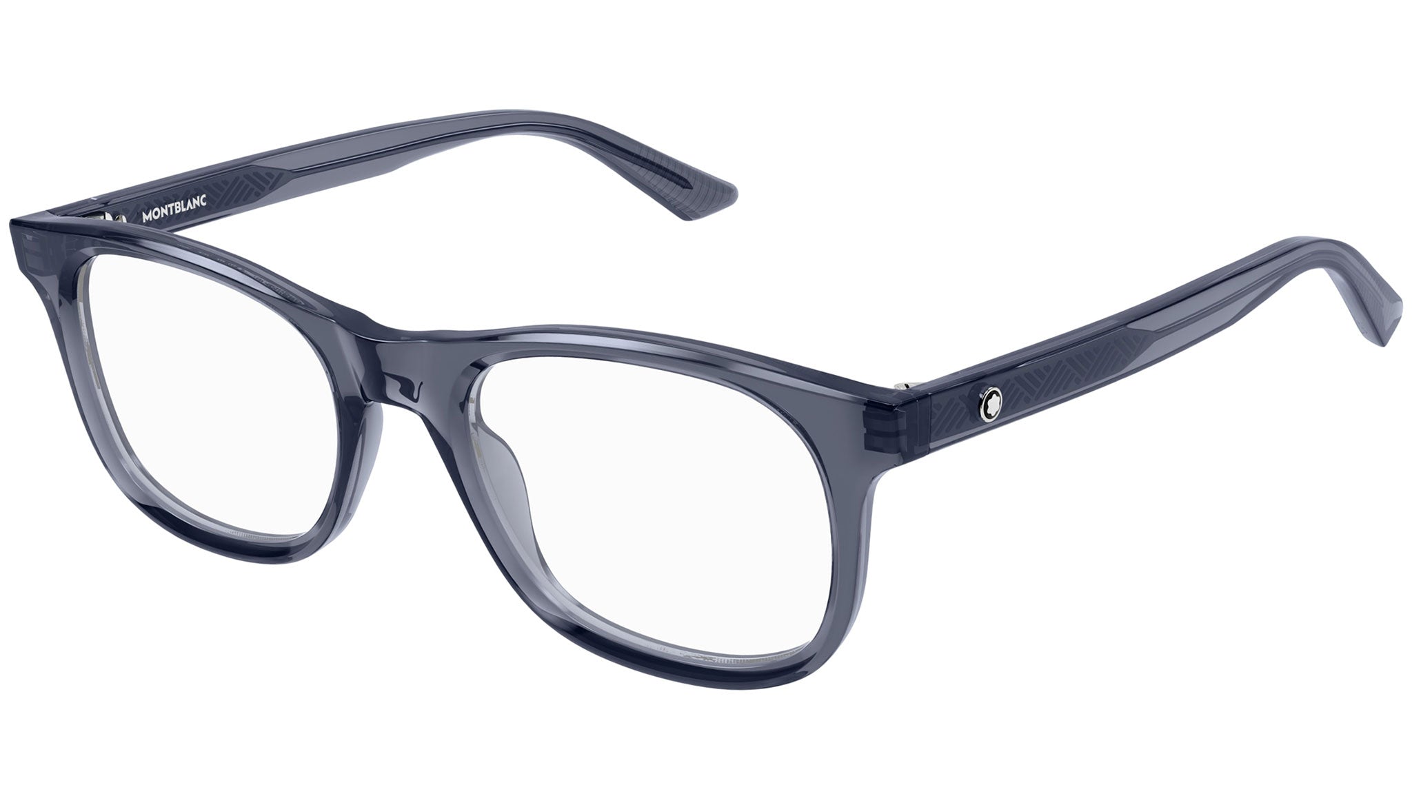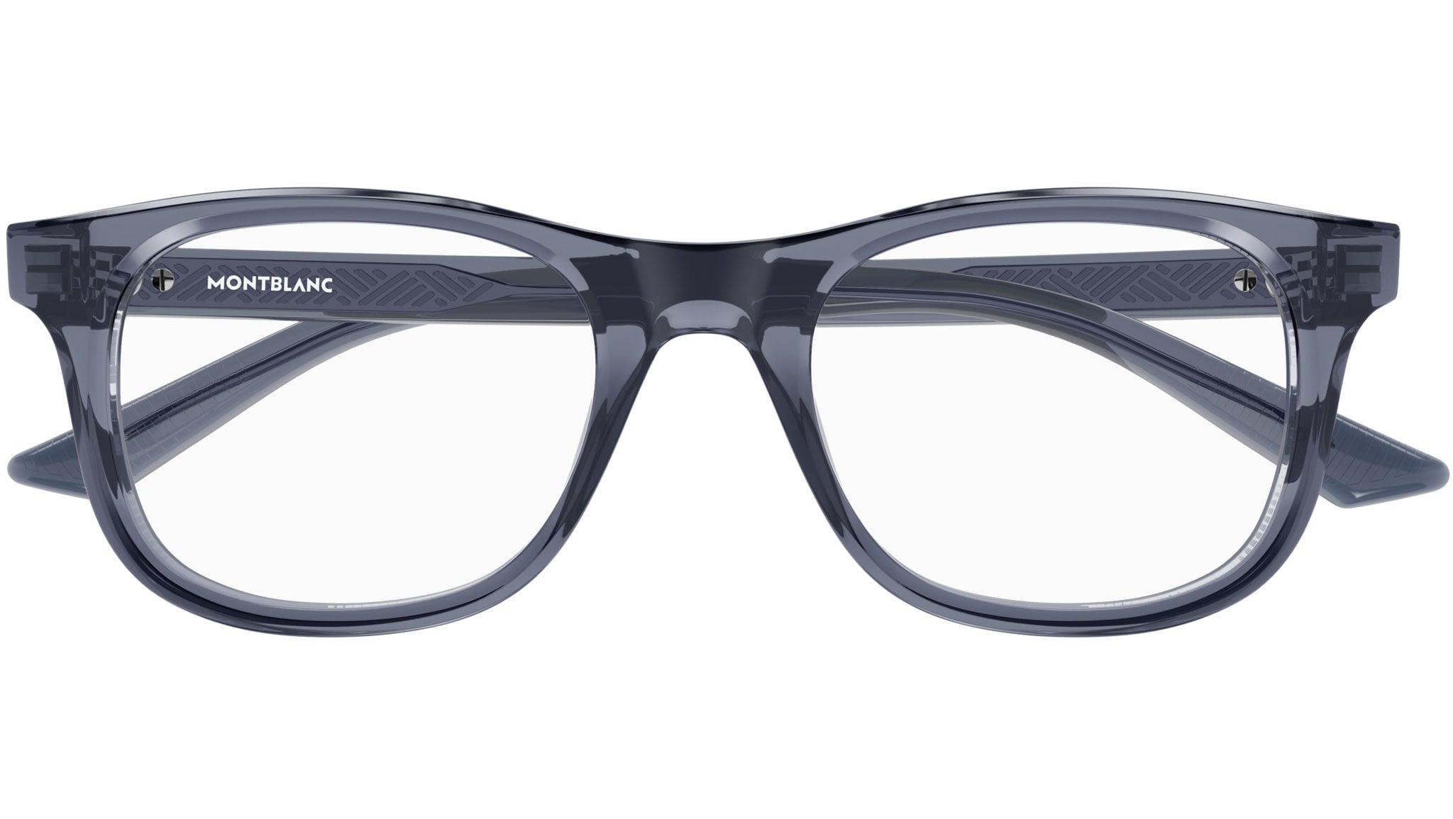 Occhiali da vista Montblanc MB0385O uomo con montatura rettangolare in acetato riciclato grigio trasparente lucido / blu lucido e lenti demo. Linea: Snowcap. Codice modello: MB0385O. Codice colore 52 mm: 005. 54 mm: 010. Made in Italy. Rivenditore autorizzato Montblanc online. Gli occhiali vengono consegnati con custodia e accessori originali e sono coperti dalla garanzia ufficiale di 12 mesi del produttore.