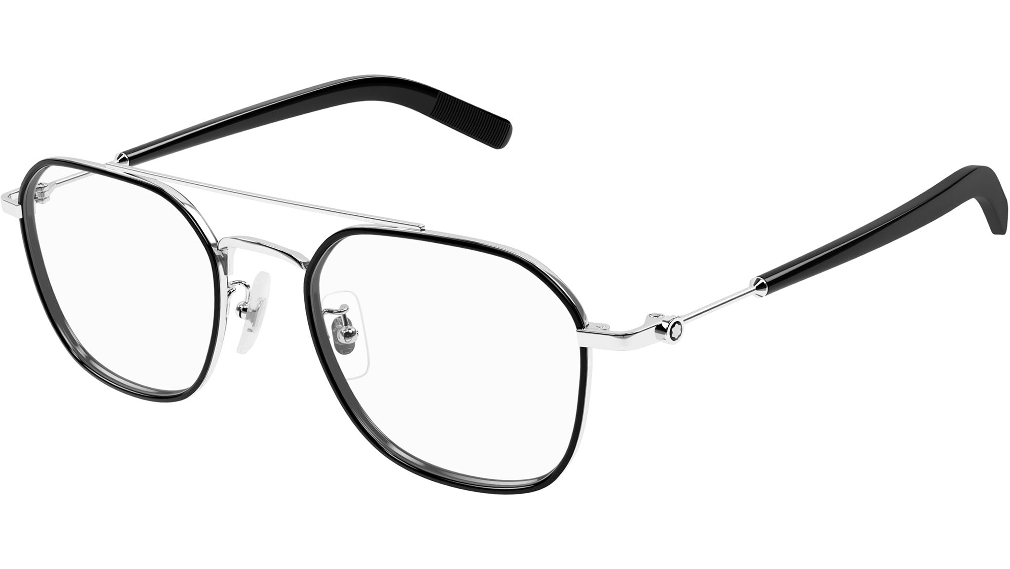 Occhiali da vista Montblanc MB0391OA 001 uomo con montatura geometrica in metallo argento lucido / nero lucido e lenti demo. Linea: Snowcap. Codice modello: MB0391OA. Codice colore: 001. Made in Japan. Rivenditore autorizzato Montblanc online. Gli occhiali vengono consegnati con custodia e accessori originali e sono coperti dalla garanzia ufficiale di 12 mesi del produttore.