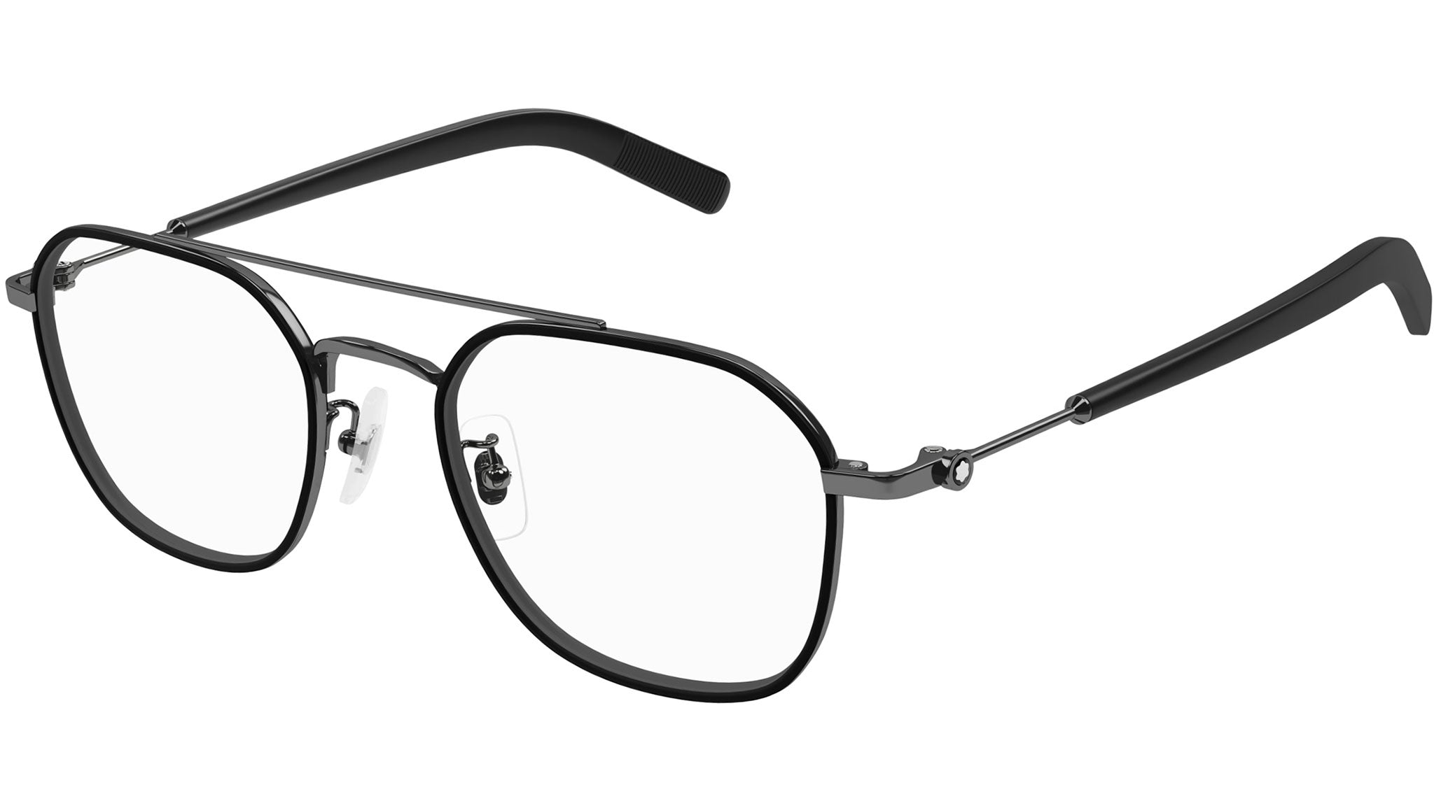 Occhiali da vista Montblanc MB0391OA 002 uomo con montatura geometrica in metallo rutenio scuro lucido / bordo nero opaco e lenti demo. Linea: Snowcap. Codice modello: MB0391OA. Codice colore: 002. Made in Japan. Rivenditore autorizzato Montblanc online. Gli occhiali vengono consegnati con custodia e accessori originali e sono coperti dalla garanzia ufficiale di 12 mesi del produttore.